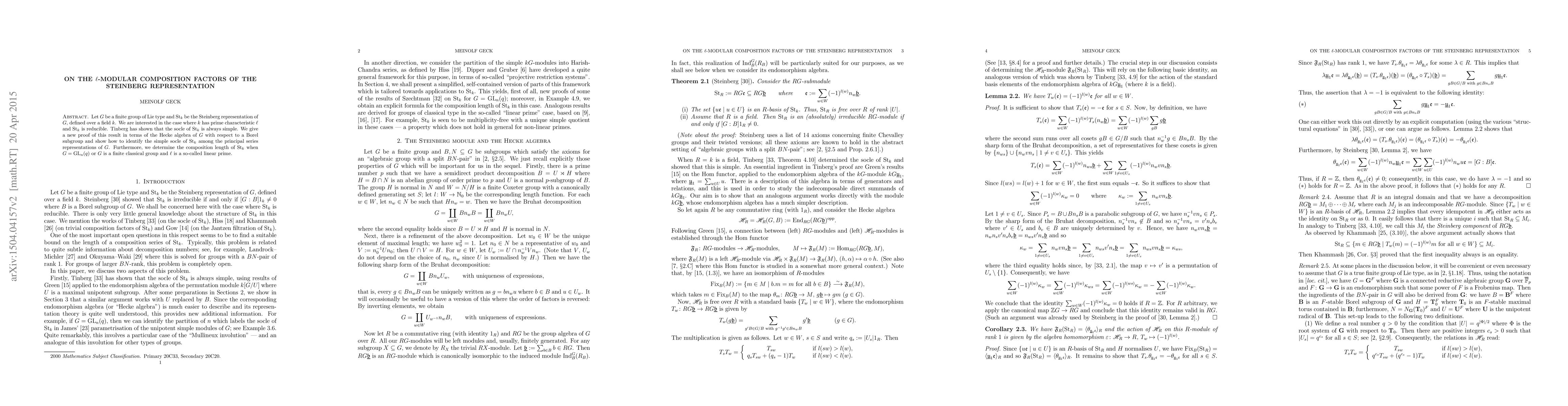The paper proves that the socle of the Steinberg representation is always simple in the case where the field has prime characteristic ε and the representation is reducible, using the Hecke algebra of a Borel subgroup.