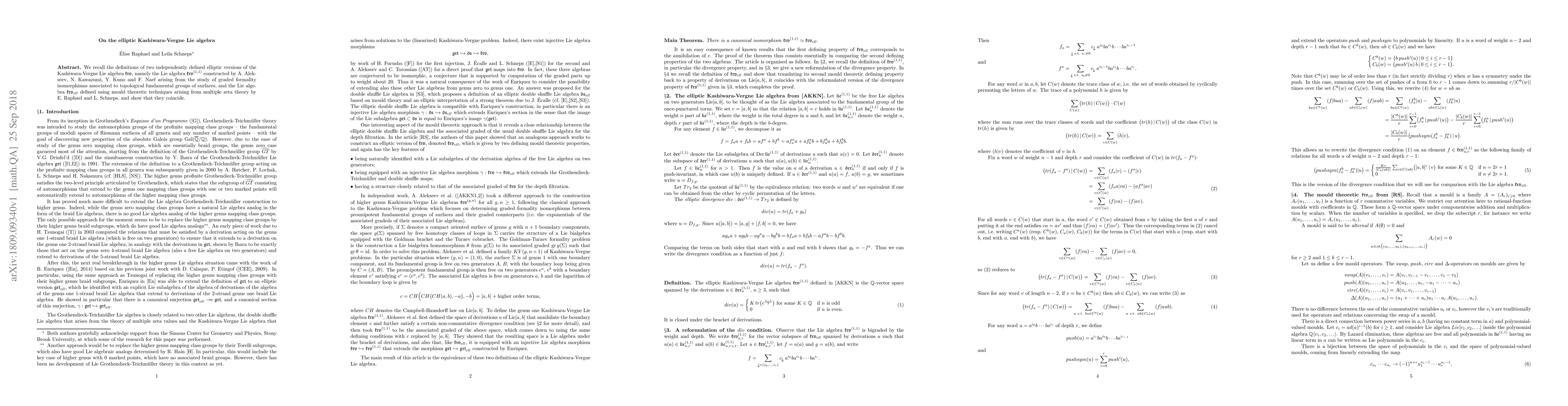 We recall the definitions of two independently defined elliptic versions of the Kashiwara-Vergne Lie algebra $\frak{krv}$, namely the Lie algebra $\frak{krv}^{(1,1)}$ constructed by A.Alekseev, N.Kawazumi, Y.Kuno and F.Naef arising from the study of graded formality isomorphisms associated to topological fundamental groups of surfaces, and the Lie algebra $\frak{krv}_{ell}$ defined using mould theoretic techniques arising from multiple zeta theory by E.Raphael and L.Schneps, and show that they coincide.