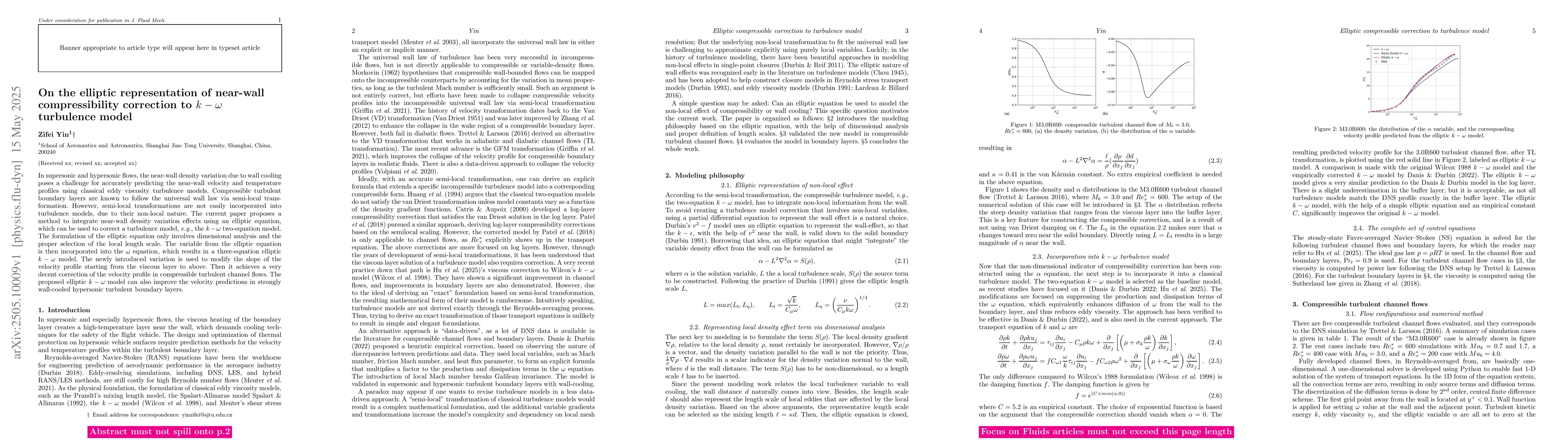 The introduction of an elliptic equation-based near-wall density variation correction to the k-ω turbulence model, facilitating more accurate predictions in compressible turbulent flows.