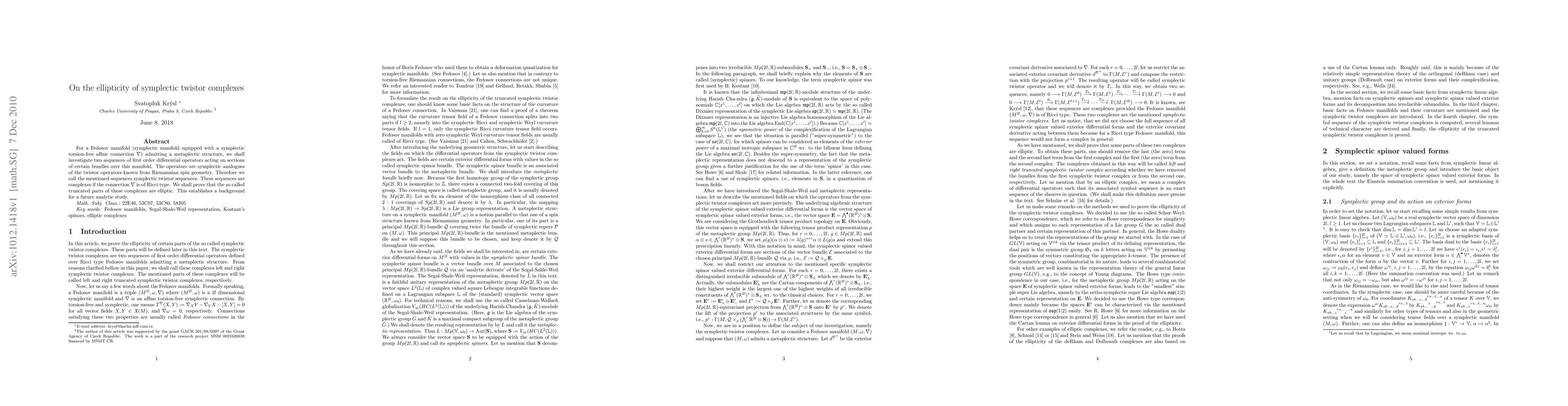 This paper investigates symplectic analogues of twistor operators on Fedosov manifolds, proving that the truncated parts of the associated symplectic twistor complexes are elliptic when the connection is of Ricci type, thereby laying the groundwork for future analytic studies.
