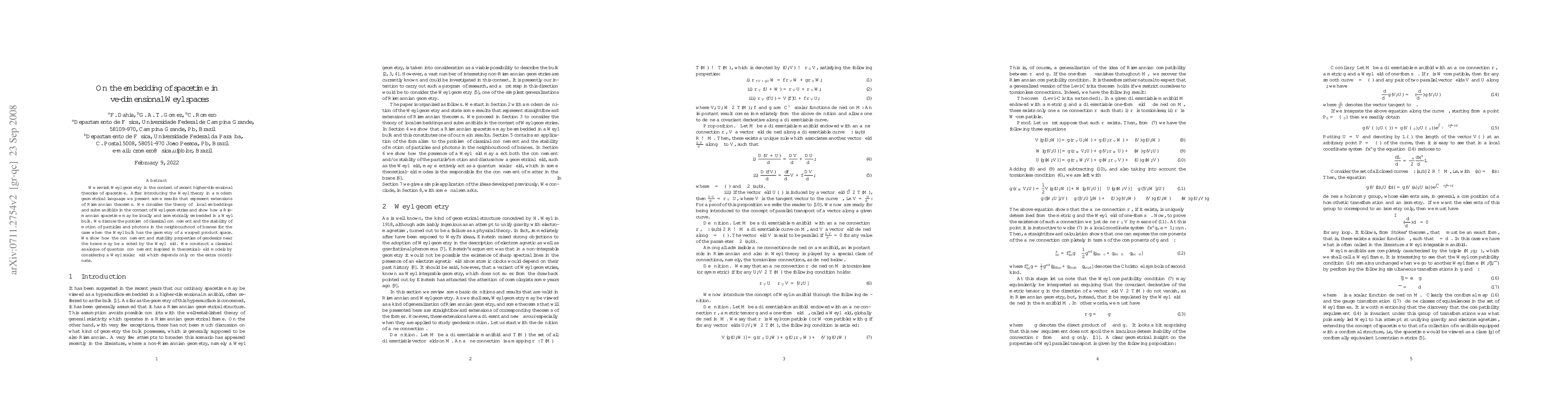 Researchers explore how spacetime can be embedded in a 5D Weyl space, finding that certain properties of Riemannian spacetimes may be affected by the presence of a Weyl field, with implications for confinement and stability near branes.