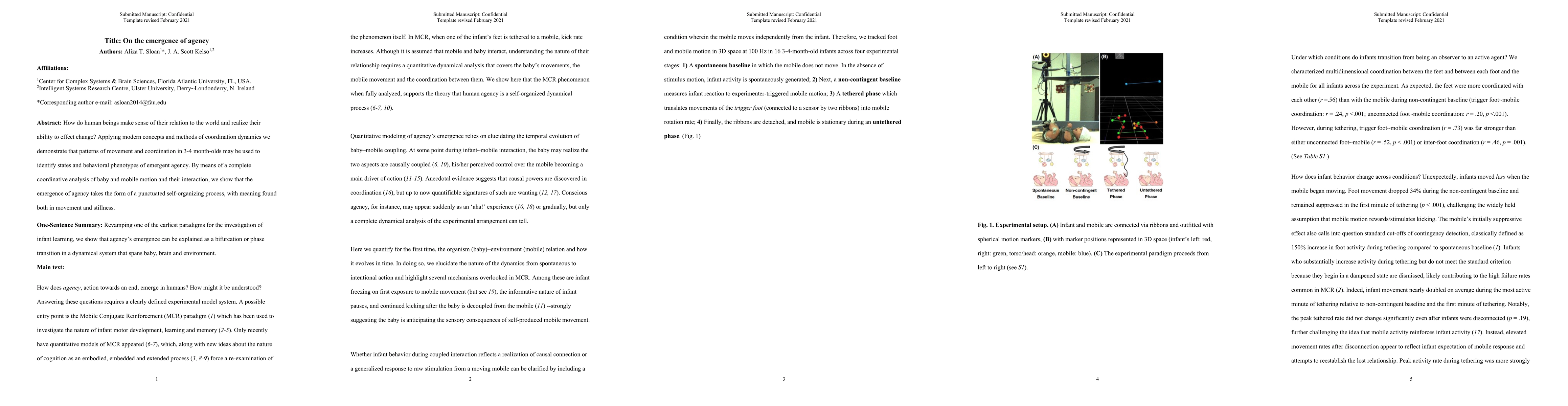 This paper explores how infants as young as 3-4 months exhibit patterns of movement indicative of emerging agency, using coordination dynamics to identify these behavioral phenotypes. The study reveals that the emergence of agency is a self-organizing process characterized by both movement and stillness.