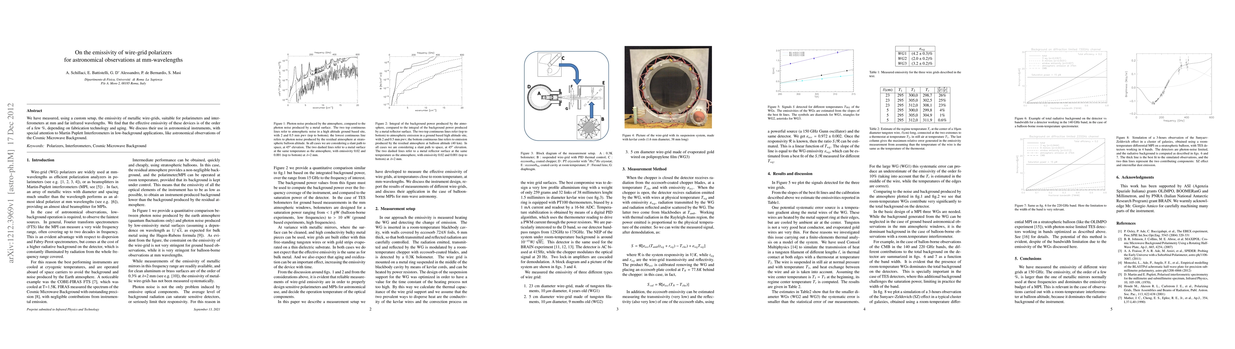 Researchers measured the emissivity of wire-grid polarizers at mm-wavelengths, finding an effective emissivity of a few percent that varies with technology and aging. The findings have implications for low-background astronomical observations, such as those using Martin Puplett Interferometers.