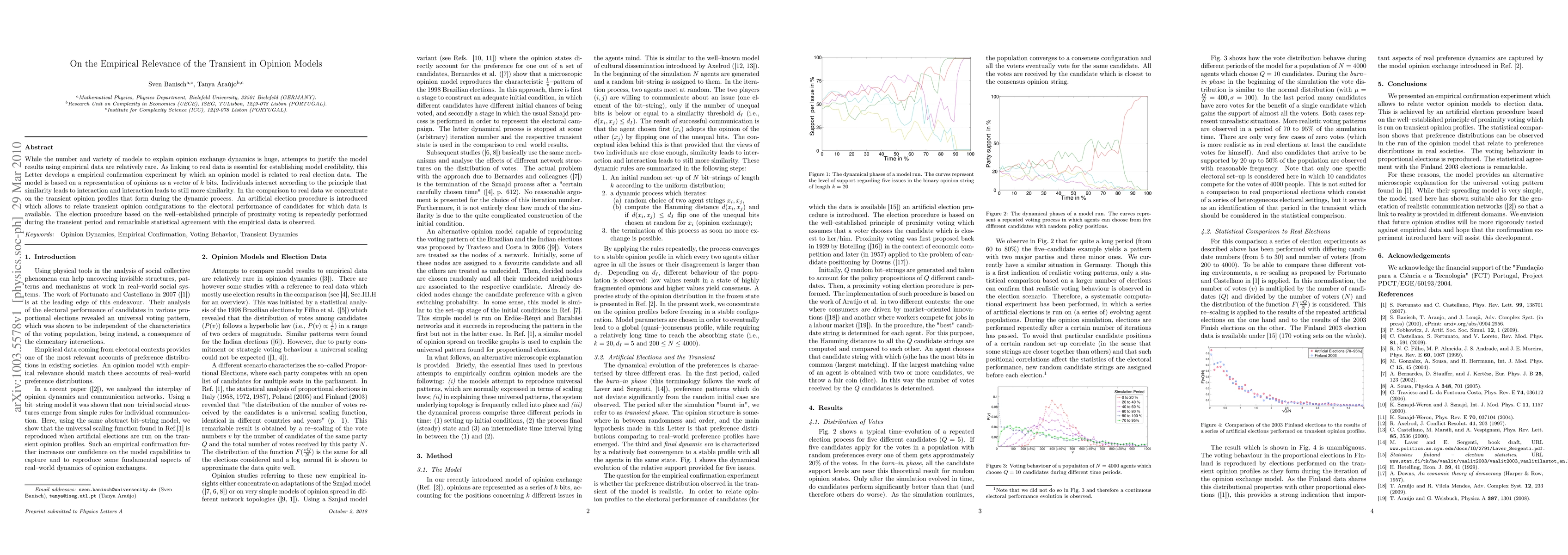 This paper develops an empirical confirmation experiment linking an opinion model based on $k$ bit vectors to real election data, focusing on transient opinion profiles. It introduces an artificial election procedure based on proximity voting, showing remarkable statistical agreement with observed electoral performance.