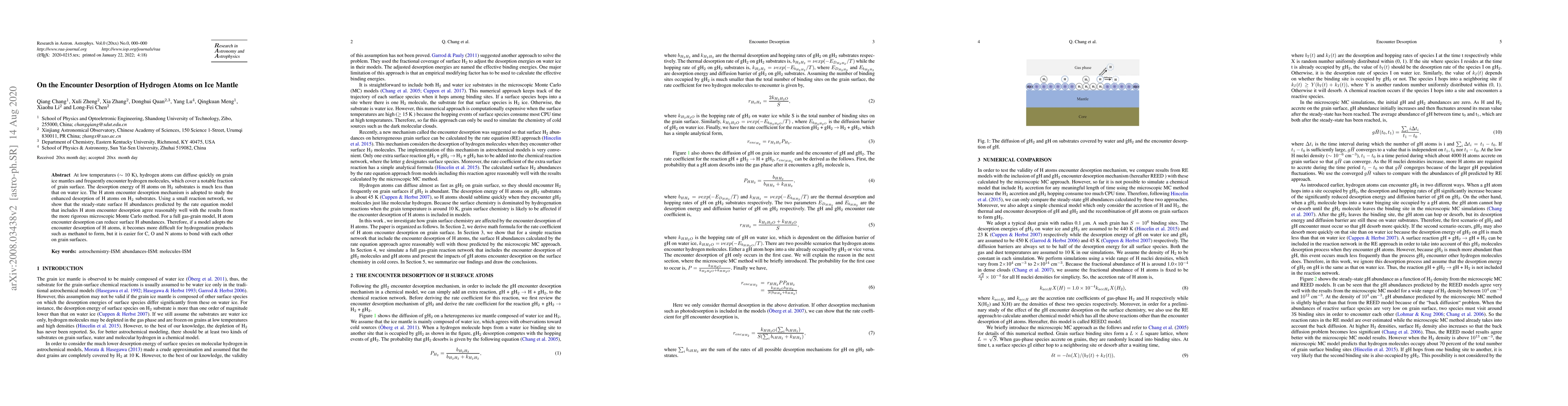 This paper investigates the enhanced desorption of hydrogen atoms on hydrogen molecule substrates at low temperatures, demonstrating that encounter desorption reduces surface hydrogen abundances. The study finds that incorporating this mechanism into gas-grain models makes hydrogenation products like methanol less likely to form, while promoting bonding of C, O, and N atoms.