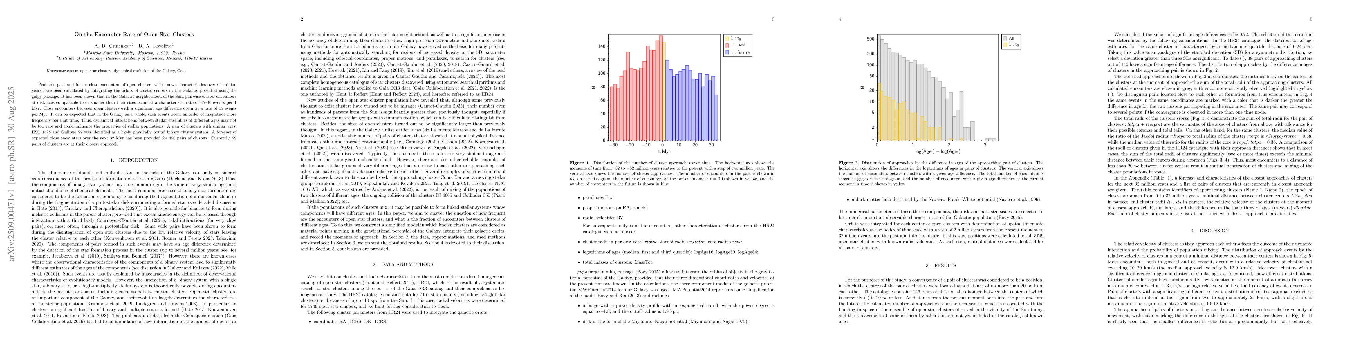 Probable past and future close encounters of open clusters with known characteristics over 64 million years have been calculated by integrating the orbits of cluster centers in the Galactic potential using the _galpy_ package. It has been shown that in the Galactic neighborhood of the Sun, pairwise cluster encounters at distances comparable to or smaller than their sizes occur at a characteristic rate of 35 to 40 events per 1 Myr. Close encounters between open clusters with a significant age difference occur at a rate of 15 events per Myr. It can be expected that in the Galaxy as a whole, such events occur an order of magnitude more frequently per unit time. Thus, dynamical interactions between stellar ensembles of different ages may not be too rare and could influence the properties of stellar populations. A pair of clusters with similar ages: HSC 1428 and Gulliver 22 was identified as a likely physically bound binary cluster system. A forecast of expected close encounters over the next 32 Myr has been provided for 490 pairs of clusters. Currently, 29 pairs of clusters are at their closest approach.
