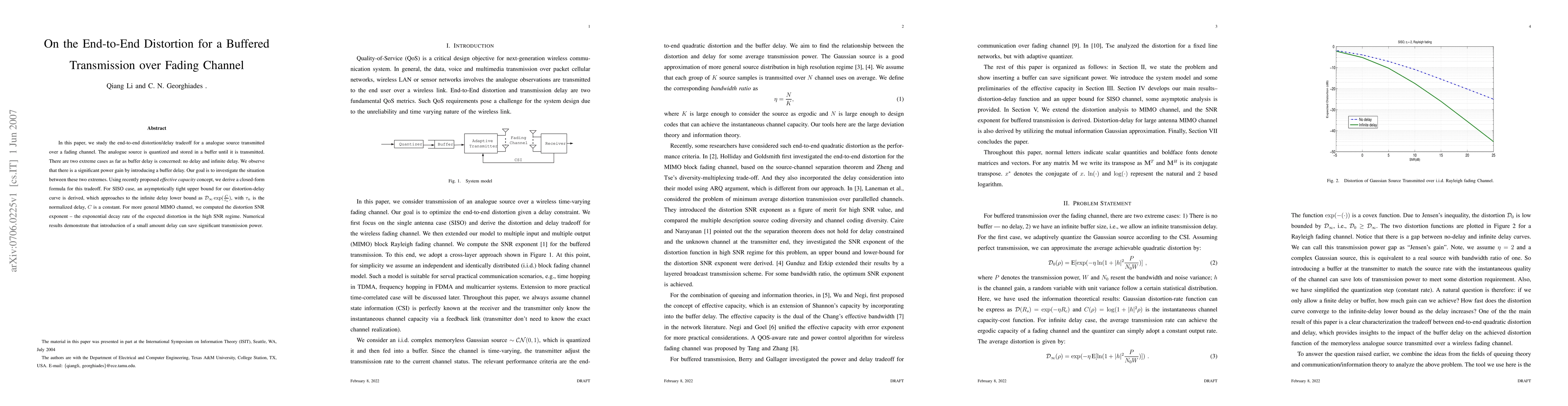 This paper investigates the end-to-end distortion/delay tradeoff for analogue sources transmitted over a fading channel with buffer storage. It finds significant power savings by introducing a moderate buffer delay, deriving a closed-form formula for this tradeoff using the effective capacity concept and demonstrating power gains through numerical results.