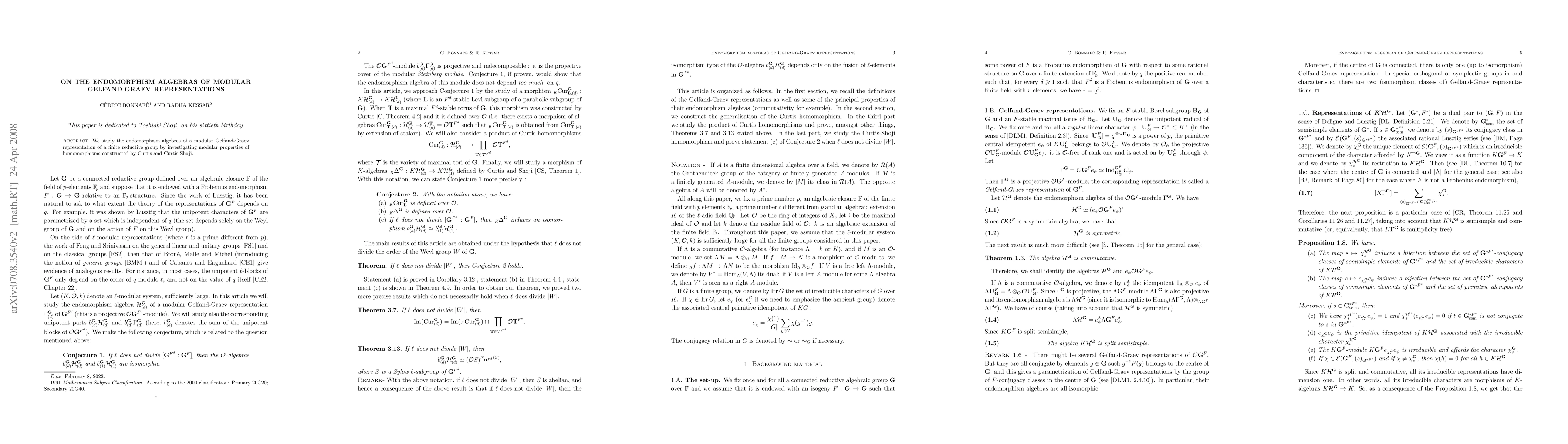 Summary: This paper investigates the endomorphism algebras of modular Gelfand-Graev representations for finite reductive groups, focusing on the modular properties of homomorphisms developed by Curtis and Curtis-Shoji.
