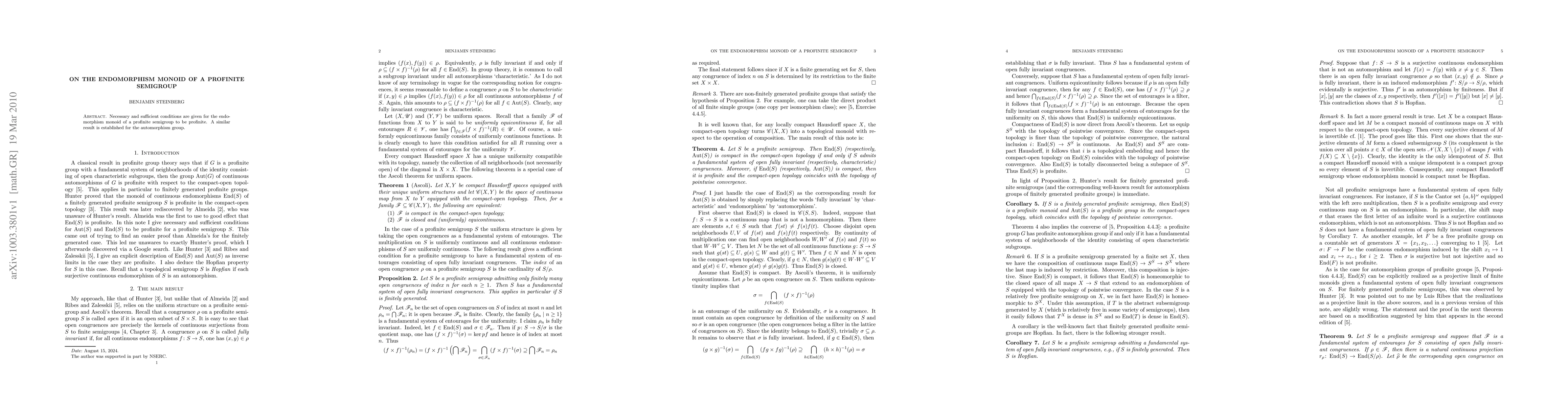 Summary: The paper provides necessary and sufficient conditions for the endomorphism monoid of a profinite semigroup to be profinite, and similarly establishes criteria for the automorphism group.