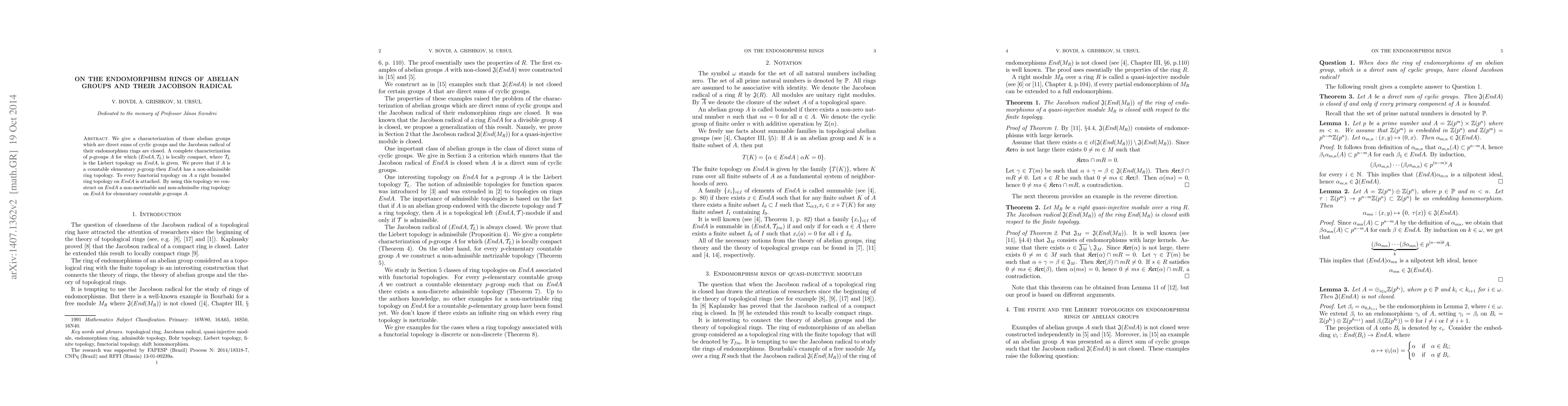 This paper characterizes abelian groups that are direct sums of cyclic groups where the Jacobson radical of their endomorphism rings is closed. It also provides a complete description of $p$-groups whose endomorphism rings with the Liebert topology are locally compact and proves that countable elementary $p$-groups have endomorphism rings with non-admissible topologies.