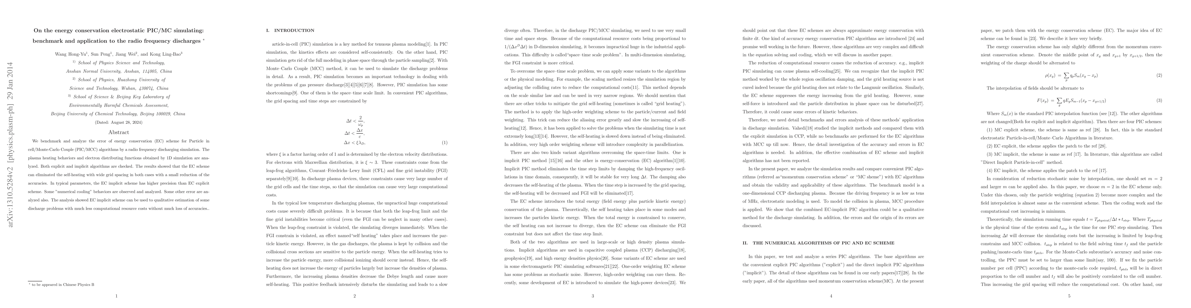 Researchers benchmarked an energy conservation scheme for Particle in Cell/Monte-Carlo algorithms, finding it reduces computational costs without significant loss of accuracy, particularly in implicit schemes.