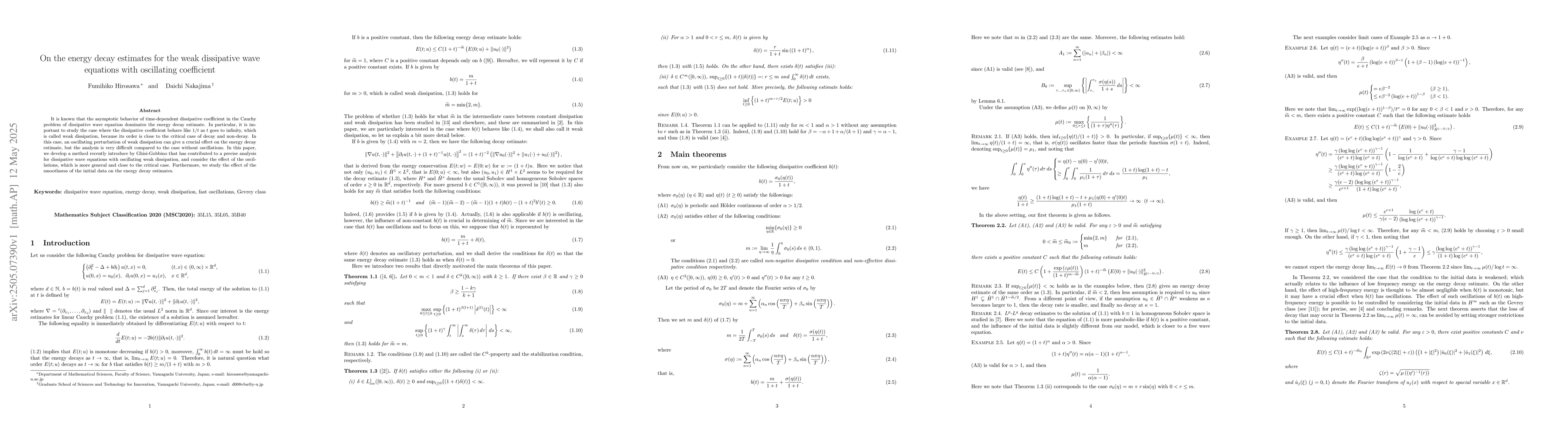 The paper introduces refined energy decay estimates for weak dissipative wave equations with oscillating coefficients, extending previous work by Ghisi and Gobbino.