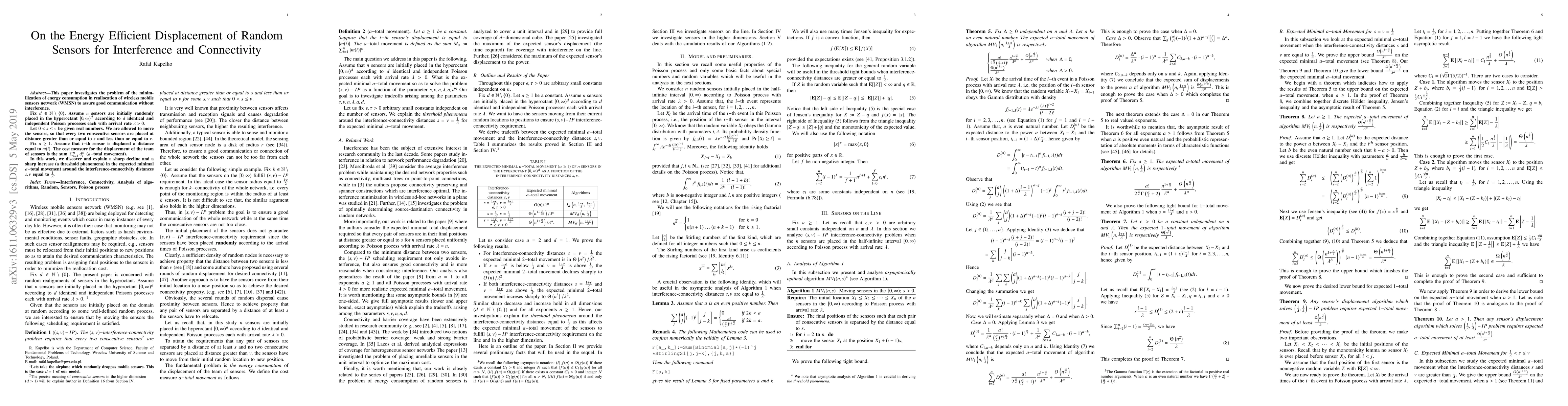 This paper investigates energy-efficient sensor relocation in wireless mobile networks to minimize interference and connectivity issues. It finds a sharp decline and increase in the required movement distance around specific threshold values related to sensor placement distances.