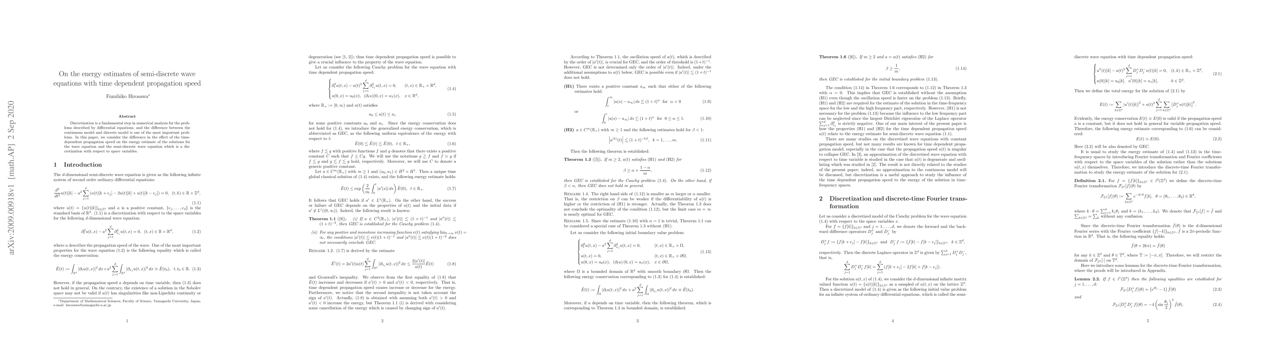 This paper explores the impact of time-dependent propagation speed on energy estimates for both continuous wave equations and their semi-discrete counterparts, focusing on the differences arising from spatial discretization.