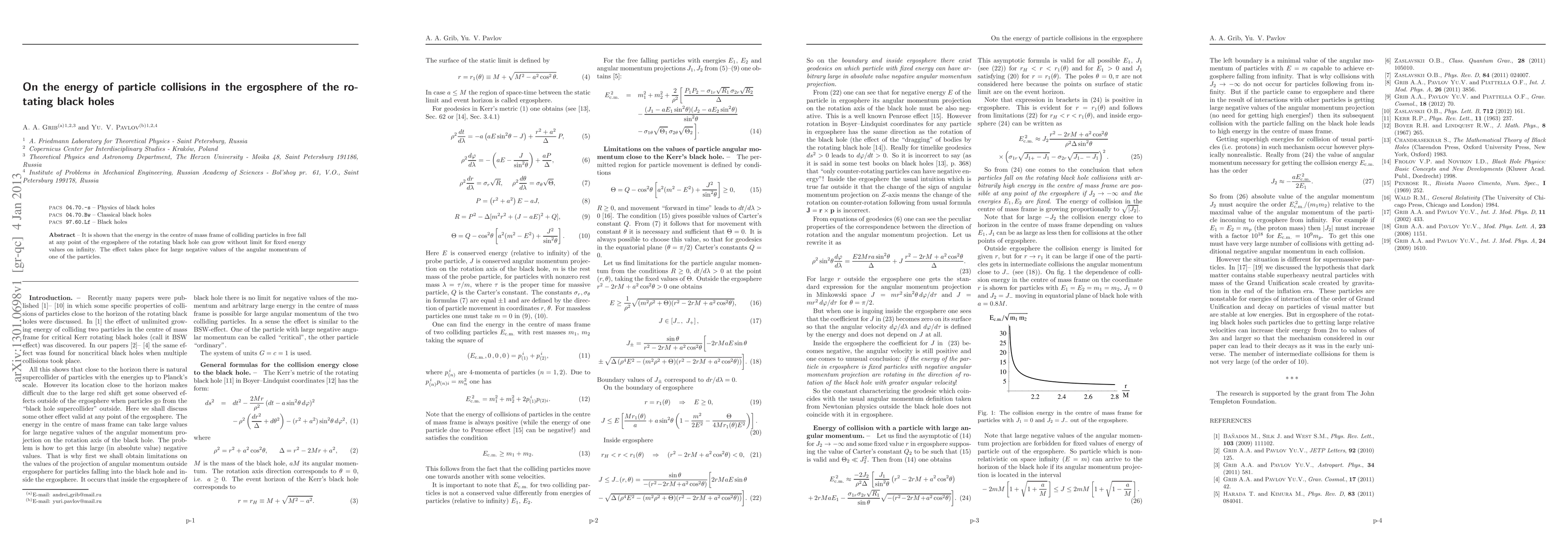 It is shown that the energy in the centre of mass frame of colliding particles in free fall at any point of the ergosphere of the rotating black hole can grow without limit for fixed energy values on infinity. The effect takes place for large negative values of the angular momentum of one of the particles.