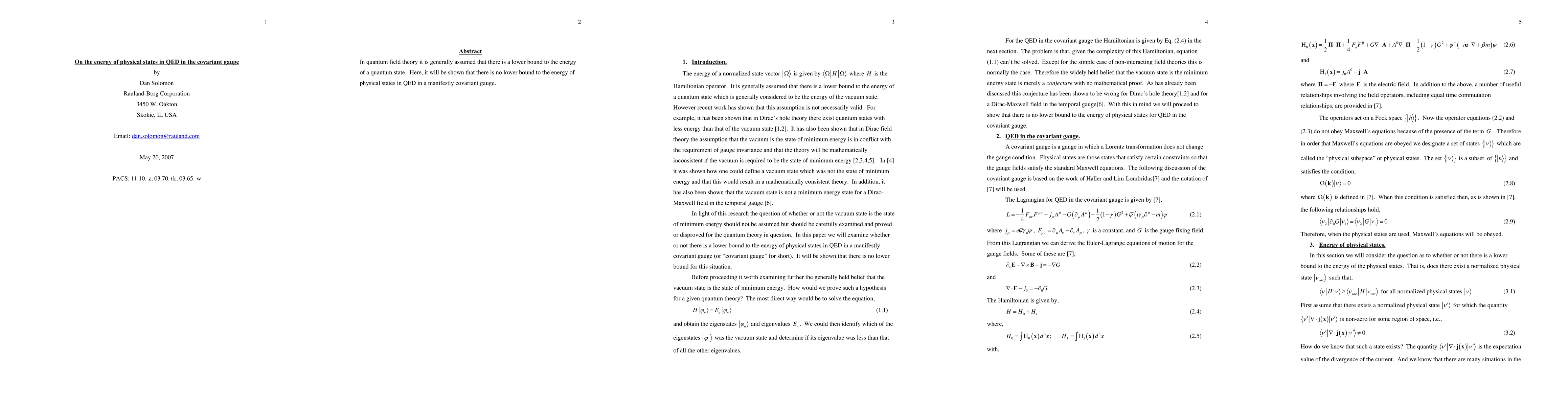 In quantum field theory it is generally assumed that there is a lower bound to the energy of a quantum state. Here, it will be shown that there is no lower bound to the energy of physical states in QED in a manifestly covariant gauge.