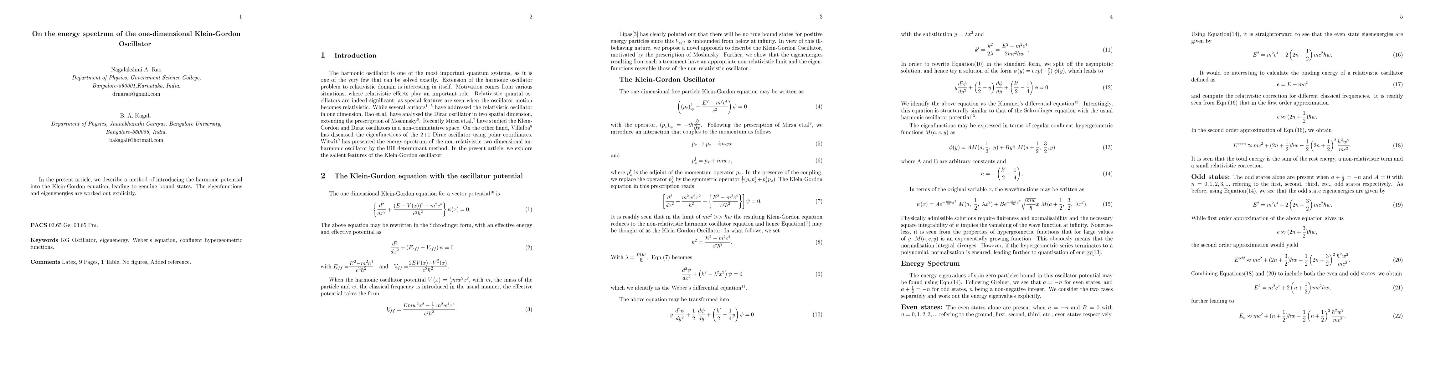 In the present article, we describe a method of introducing the harmonic potential into the Klein-Gordon equation, leading to genuine bound states. The eigenfunctions and eigenenergies are worked out explicitly.