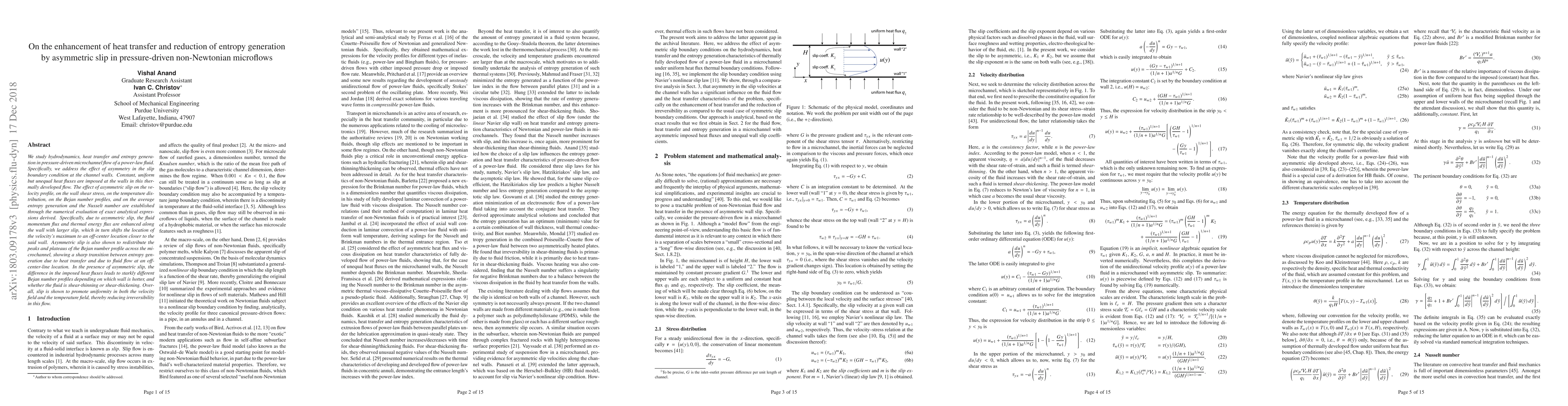 This study explores how asymmetric slip in microflows can enhance heat transfer and reduce entropy generation, promoting uniformity in velocity and temperature fields.