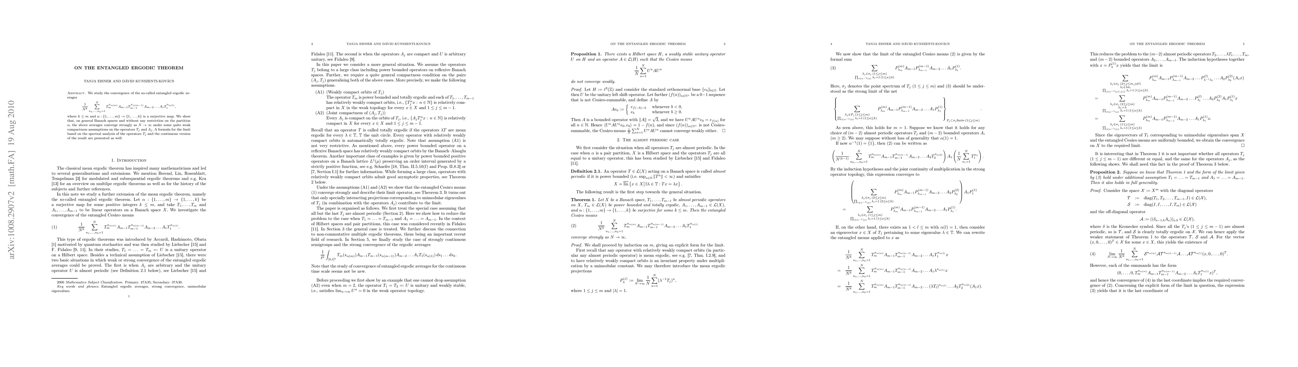 We study the convergence of the so-called entangled ergodic averages $\frac{1}{N^k}\sum_{n_1,...,n_k=1}^{N}T_m^{n_{\alpha(m)}}A_{m-1}T_{m-1}^{n_{\alpha(m-1)}}A_{m-2}...A_1T_1^{n_{\alpha(1)}},$ where $k\leq m$ and $\alpha:\{1,...,m\}\to\{1,...,k\}$ is a surjective map. We show that, on general Banach spaces and without any restriction on the partition $\alpha$, the above averages converge strongly as $N\to \infty$ under some quite weak compactness assumptions on the operators $T_j$ and $A_j$. A formula for the limit based on the spectral analysis of the operators $T_j$ and the continuous version of the result are presented as well.
