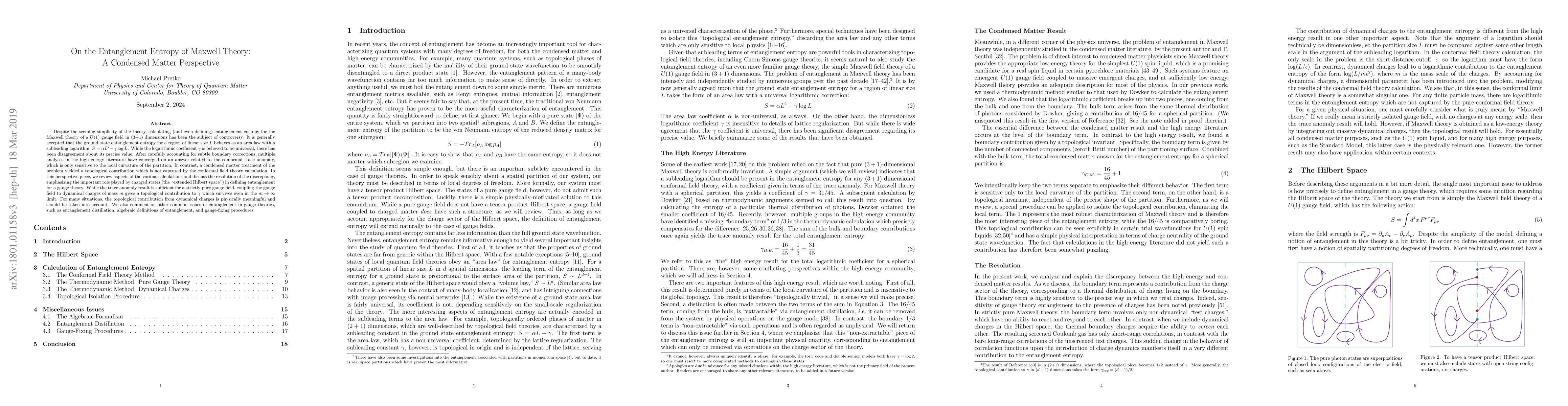 This paper reviews the entanglement entropy in Maxwell theory, highlighting the discrepancy between high energy and condensed matter perspectives. It resolves the controversy by showing that the topological contribution from dynamical charges, not captured by conformal field theory, is essential for a complete understanding, especially when gauge fields are coupled to charged states.