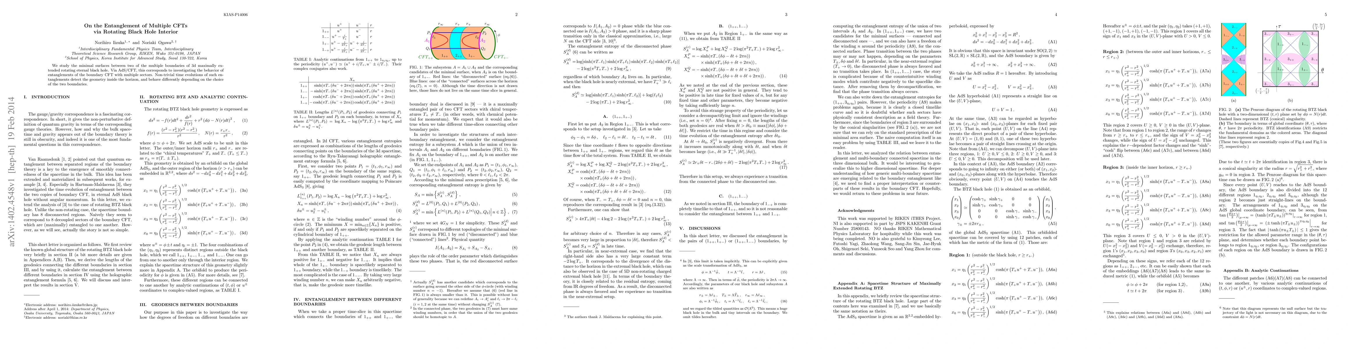 We study the minimal surfaces between two of the multiple boundaries of 3d maximally extended rotating eternal black hole. Via AdS/CFT, this corresponds to investigating the behavior of entanglements of the boundary CFT with multiple sectors. Non-trivial time evolutions of such entanglements detect the geometry inside the horizon, and behave differently depending on the choice of the two boundaries.