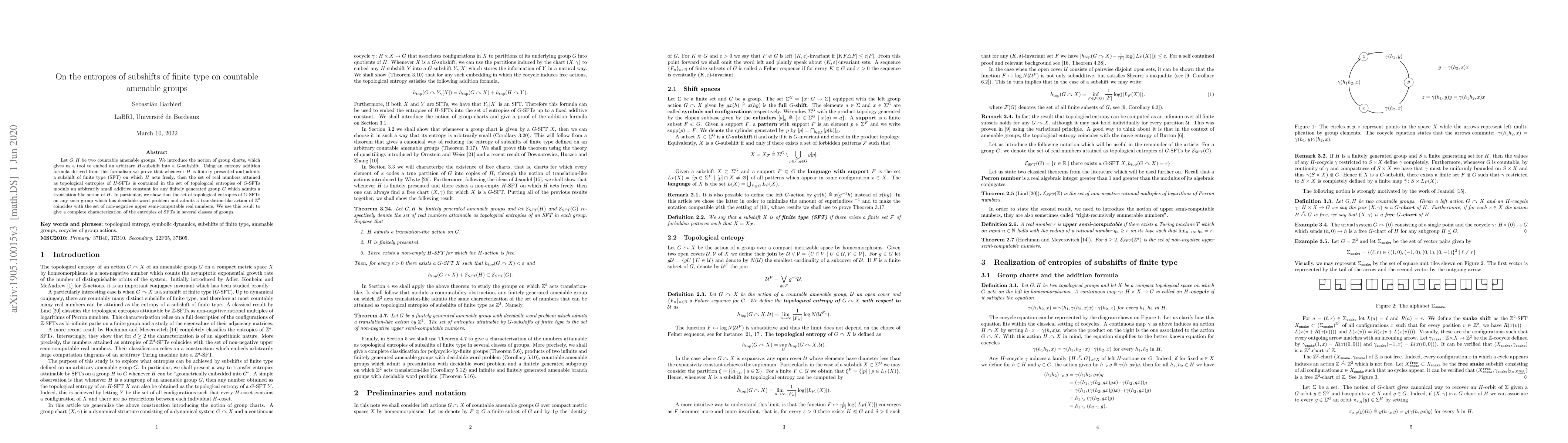 Let $G,H$ be two countable amenable groups. We introduce the notion of group charts, which gives us a tool to embed an arbitrary $H$-subshift into a $G$-subshift. Using an entropy addition formula derived from this formalism we prove that whenever $H$ is finitely presented and admits a subshift of finite type (SFT) on which $H$ acts freely, then the set of real numbers attained as topological entropies of $H$-SFTs is contained in the set of topological entropies of $G$-SFTs modulo an arbitrarily small additive constant for any finitely generated group $G$ which admits a translation-like action of $H$. In particular, we show that the set of topological entropies of $G$-SFTs on any such group which has decidable word problem and admits a translation-like action of $\mathbb{Z}^2$ coincides with the set of non-negative upper semi-computable real numbers. We use this result to give a complete characterization of the entropies of SFTs in several classes of groups.