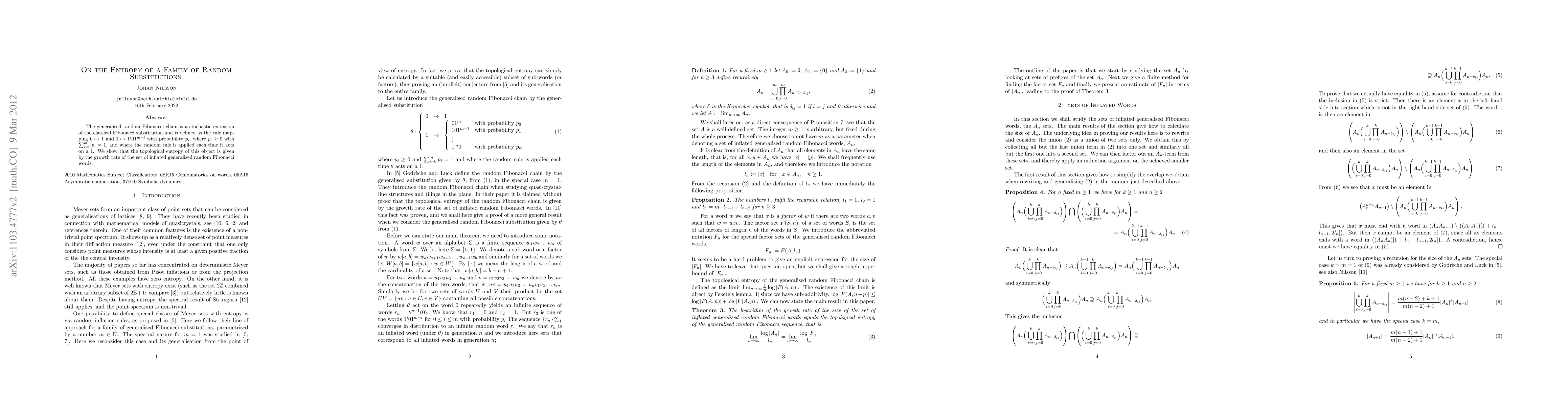The research extends prior work on deterministic Fibonacci substitutions by introducing randomness, thereby offering new insights into the entropy and structural growth of such stochastic systems.