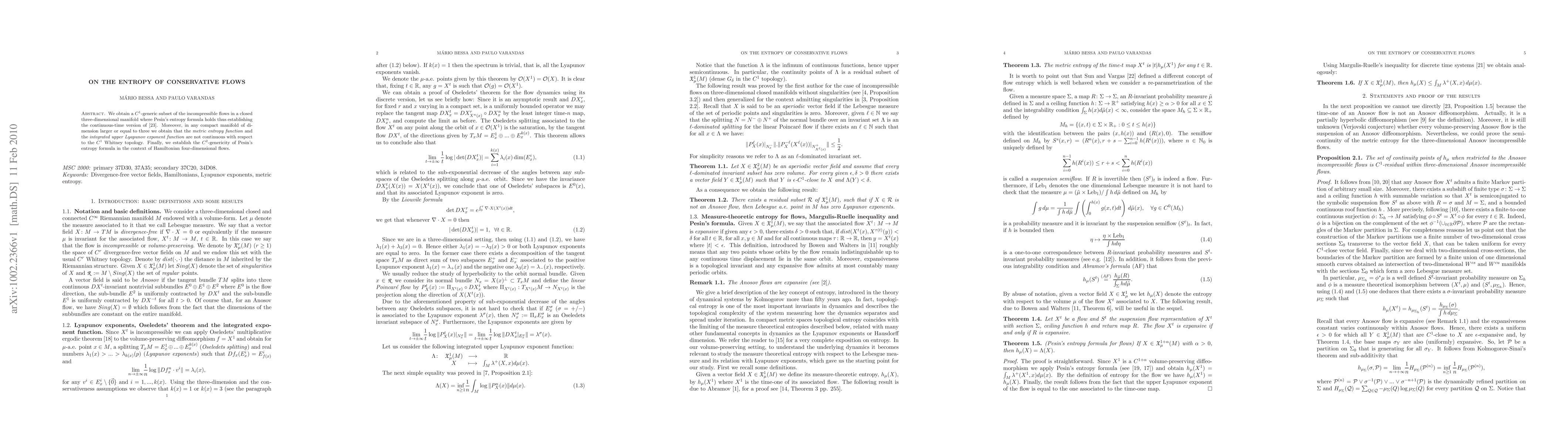 We obtain a $C^1$-generic subset of the incompressible flows in a closed three-dimensional manifold where Pesin's entropy formula holds thus establishing the continuous-time version of \cite{T}. Moreover, in any compact manifold of dimension larger or equal to three we obtain that the metric entropy function and the integrated upper Lyapunov exponent function are not continuous with respect to the $C^1$ Whitney topology. Finally, we establish the $C^2$-genericity of Pesin's entropy formula in the context of Hamiltonian four-dimensional flows.