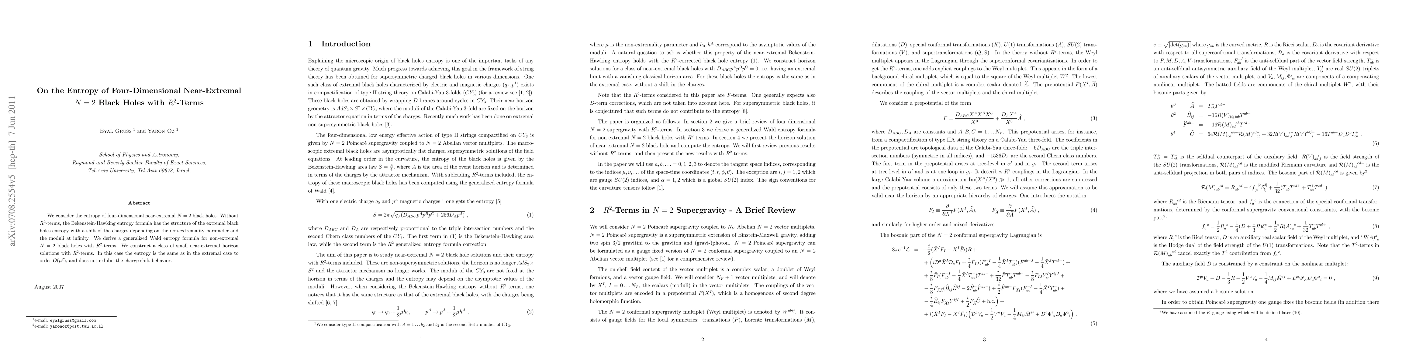 This paper derives a generalized Wald entropy formula for four-dimensional near-extremal N=2 black holes with R^2-terms, showing that the entropy remains the same as in the extremal case to O(μ^2), without the charge shift behavior typically observed.