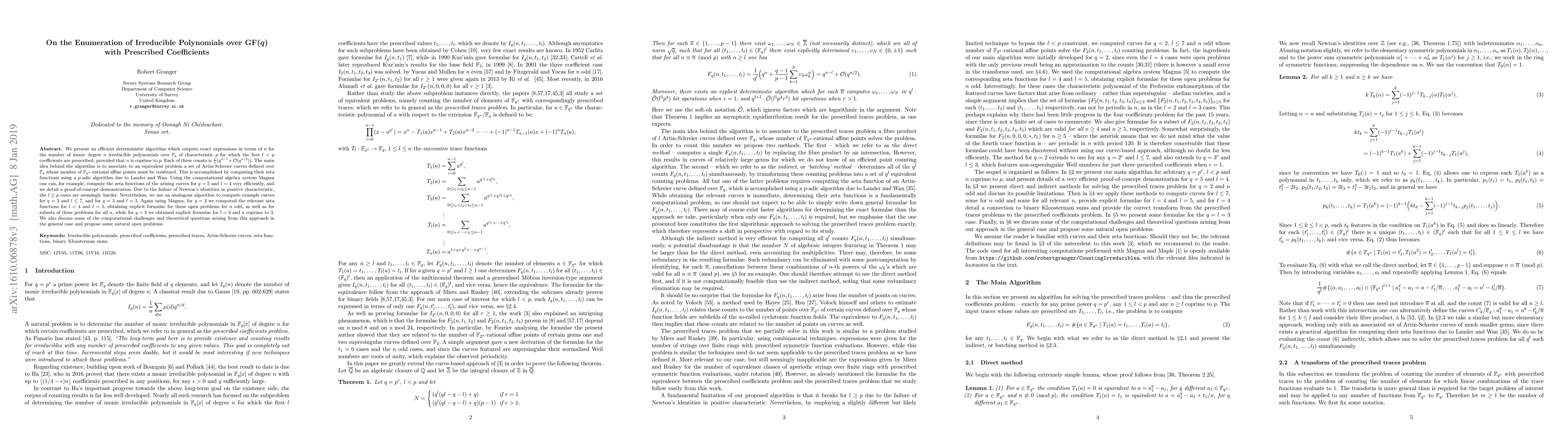 Researchers developed an algorithm to efficiently count monic degree n irreducible polynomials over GF(q) with prescribed coefficients, providing exact expressions for the number of such polynomials in terms of n.