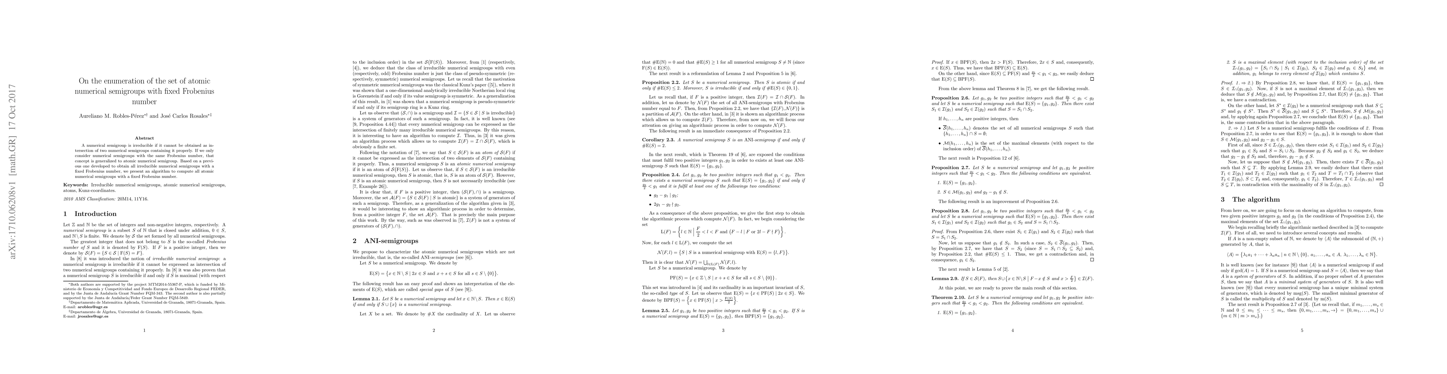 This paper presents an algorithm to enumerate all atomic numerical semigroups with a fixed Frobenius number, extending the method previously developed for irreducible numerical semigroups. The focus is on identifying these special semigroups within a given numerical structure.