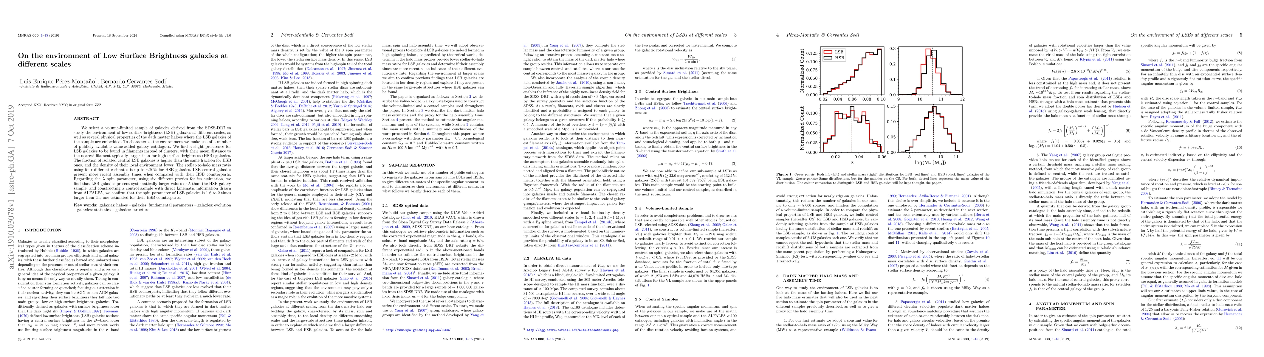 This study uses SDSS-DR7 data to analyze the environment of Low Surface Brightness (LSB) galaxies, finding they prefer filaments over clusters, have higher stellar-to-halo mass ratios, later assembly times, and larger spin parameters compared to High Surface Brightness (HSB) galaxies. This suggests distinct formation and evolution processes for LSB galaxies.