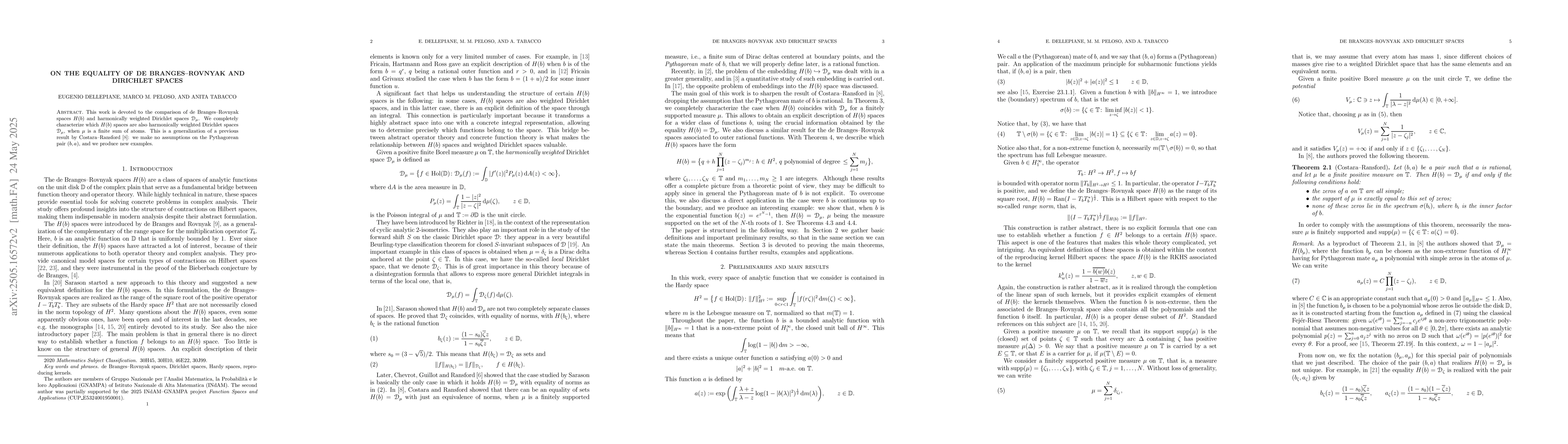 The paper employs a detailed analysis comparing de Branges-Rovnyak H(b) spaces with harmonically weighted Dirichlet spaces D_μ, focusing on cases where μ is a finite sum of atoms.