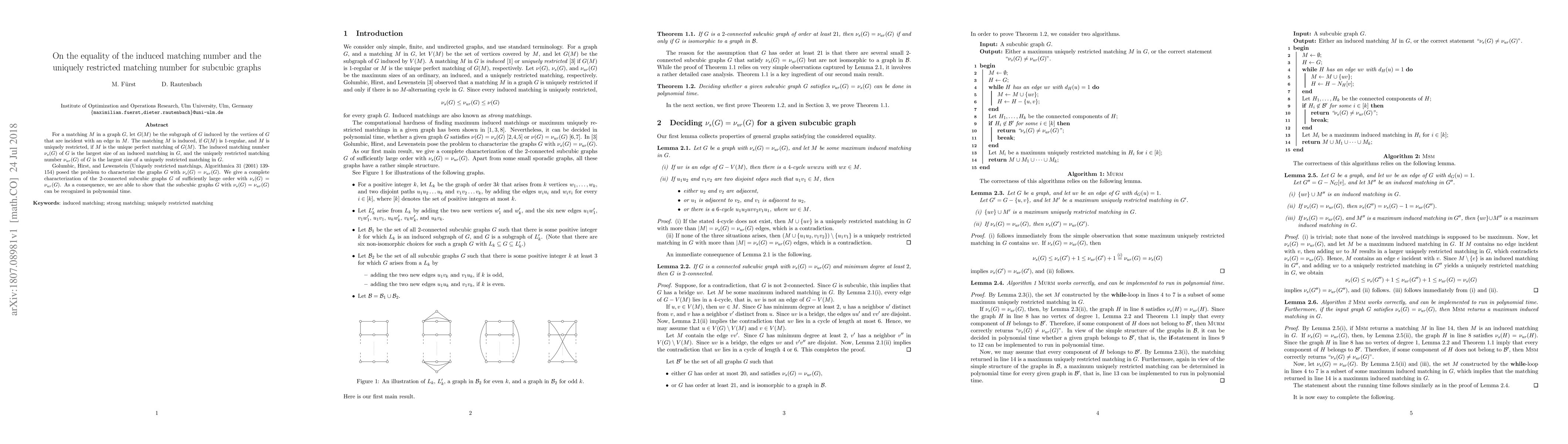 This paper characterizes 2-connected subcubic graphs where the induced matching number equals the uniquely restricted matching number, proving that such graphs can be recognized in polynomial time. It resolves a problem posed by Golumbic, Hirst, and Lewenstein regarding the equality of these two matching numbers.