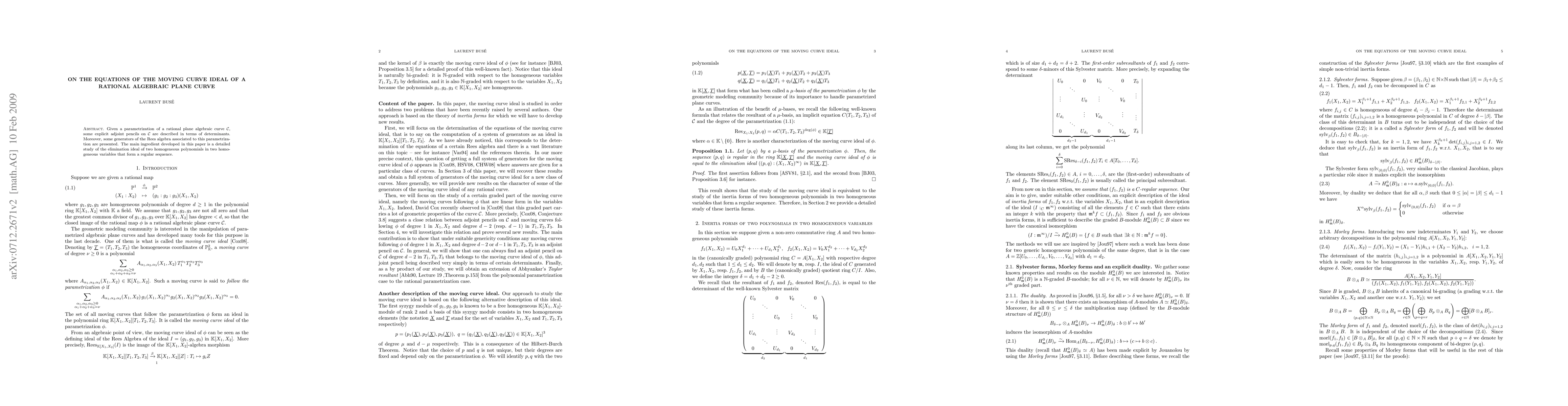 Summary: This paper explores explicit adjoint pencils on a rational plane algebraic curve using determinant expressions and presents generators for the Rees algebra associated with its parametrization, focusing on the elimination ideal of a regular sequence of two homogeneous polynomials.