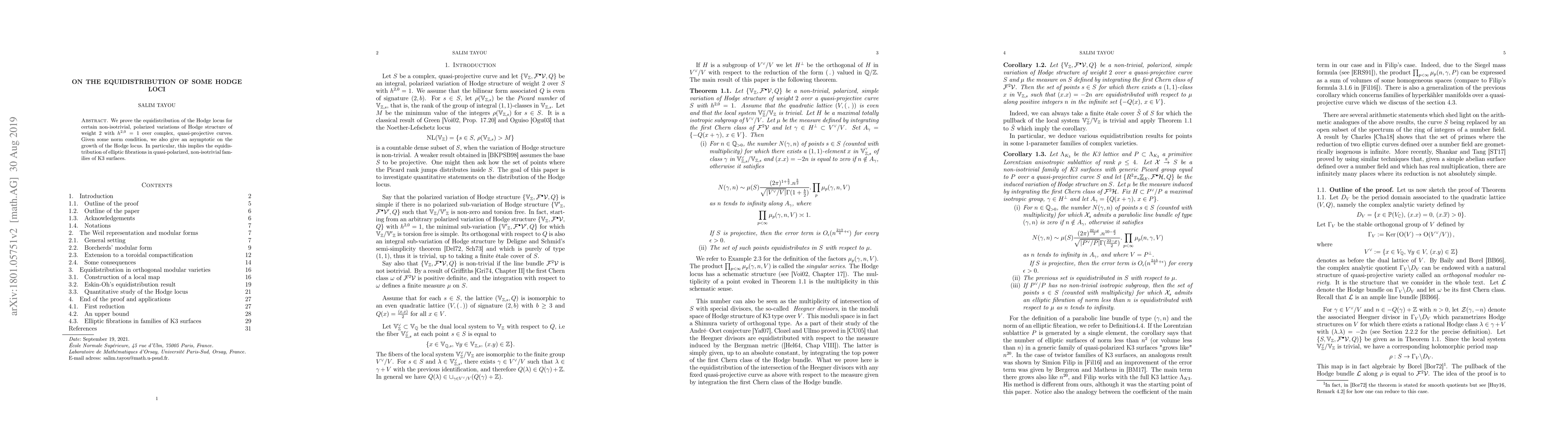 The work extends previous results by providing equidistribution for a more specific class of variations of Hodge structure and linking it to elliptic fibrations in families of K3 surfaces.