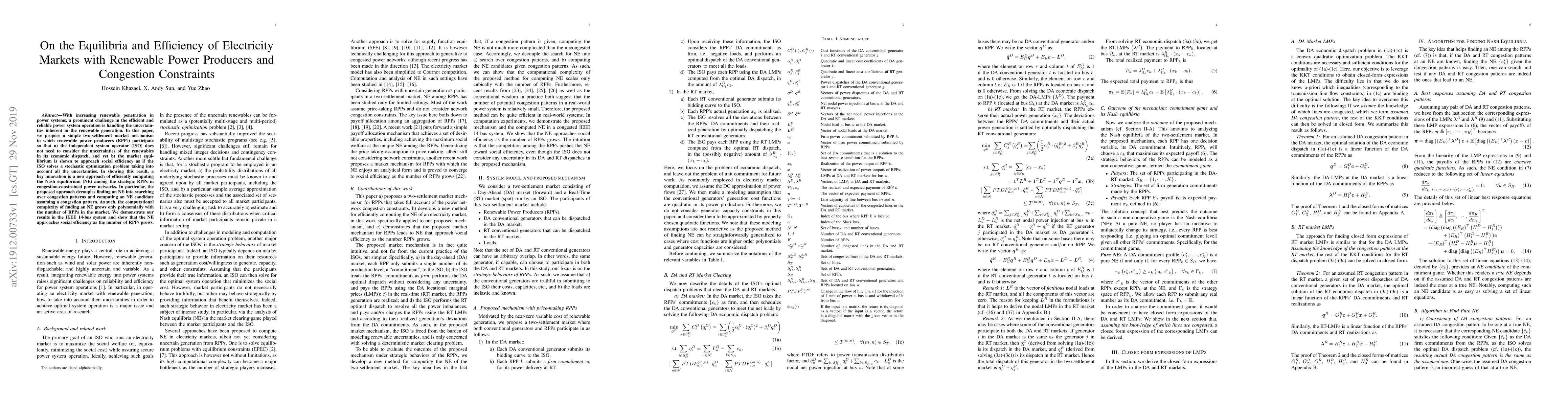 This paper proposes a two-settlement market mechanism for renewable power producers that simplifies the independent system operator's economic dispatch by decoupling uncertainties. The approach efficiently computes Nash equilibrium in congestion-constrained networks, demonstrating social efficiency in the IEEE 14-bus system.