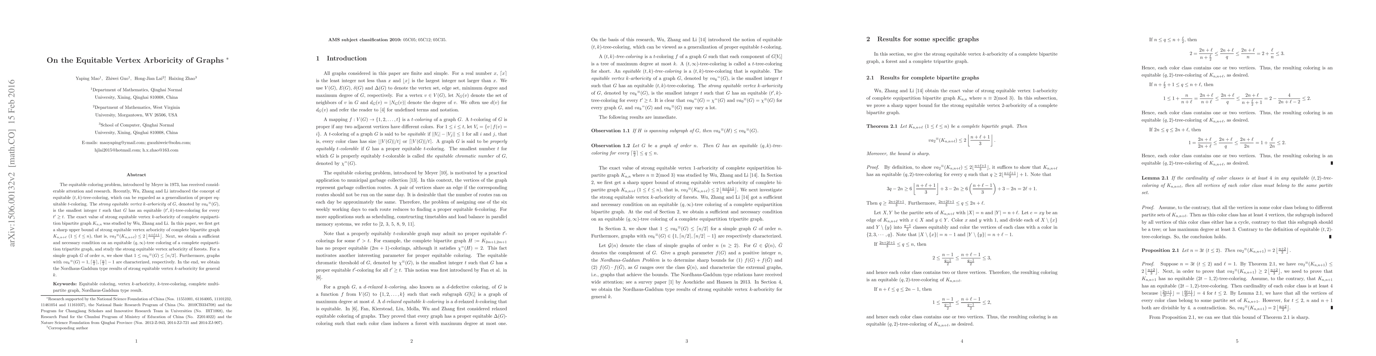 The equitable coloring problem, introduced by Meyer in 1973, has received considerable attention and research. Recently, Wu, Zhang and Li introduced the concept of equitable $(t,k)$-tree-coloring, which can be regarded as a generalization of proper equitable $t$-coloring. The \emph{strong equitable vertex $k$-arboricity} of $G$, denoted by ${va_k}^\equiv(G)$, is the smallest integer $t$ such that $G$ has an equitable $(t', k)$-tree-coloring for every $t'\geq t$. The exact value of strong equitable vertex $k$-arboricity of complete equipartition bipartite graph $K_{n,n}$ was studied by Wu, Zhang and Li. In this paper, we first get a sharp upper bound of strong equitable vertex arboricity of complete bipartite graph$K_{n,n+\ell} \ (1\leq \ell\leq n)$, that is, ${va_2}^\equiv(K_{n,n+\ell})\leq2\left\lfloor{\frac{n+\ell+1}{3}}\right\rfloor$. Next, we obtain a sufficient and necessary condition on an equitable $(q,\infty)$-tree coloring of a complete equipartition tripartite graph, and study the strong equitable vertex arboricity of forests. For a simple graph $G$ of order $n$, we show that $1\leq {va_k}^\equiv(G)\leq \lceil n/2 \rceil$. Furthermore, graphs with ${va_k}^\equiv(G)=1,\lceil\frac{n}{2}\rceil,\lceil\frac{n}{2}\rceil-1$ are characterized, respectively. In the end, we obtain the Nordhaus-Gaddum type results of strong equitable vertex $k$-arboricity for general $k$.