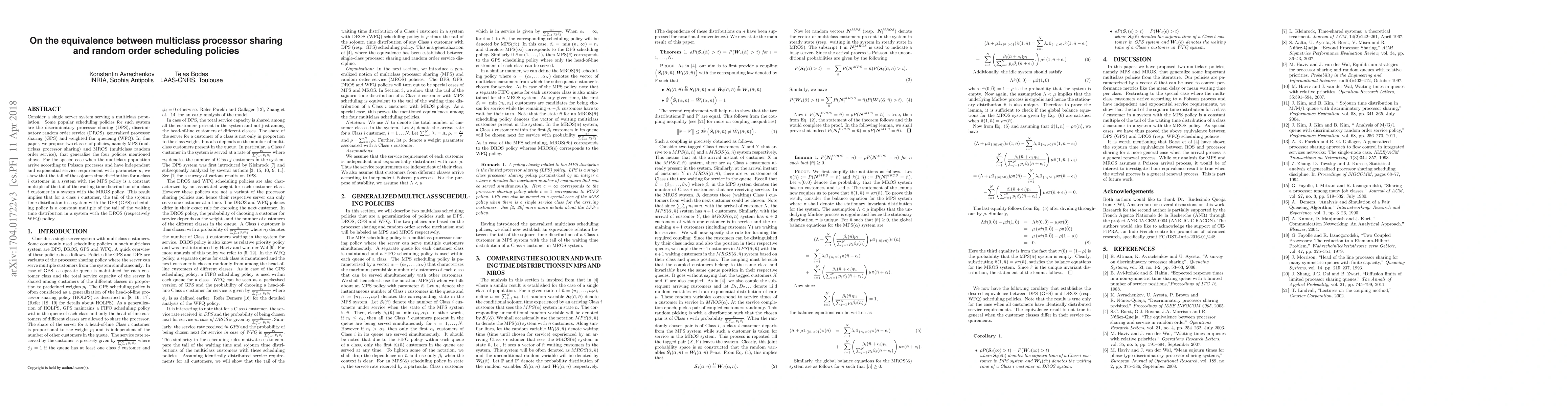 This paper proposes two classes of scheduling policies, MPS and MROS, that generalize existing methods like DPS, DROS, GPS, and WFQ. It demonstrates an equivalence in the tail behavior of sojourn and waiting times between MPS and MROS under Poisson arrivals and exponential service requirements.