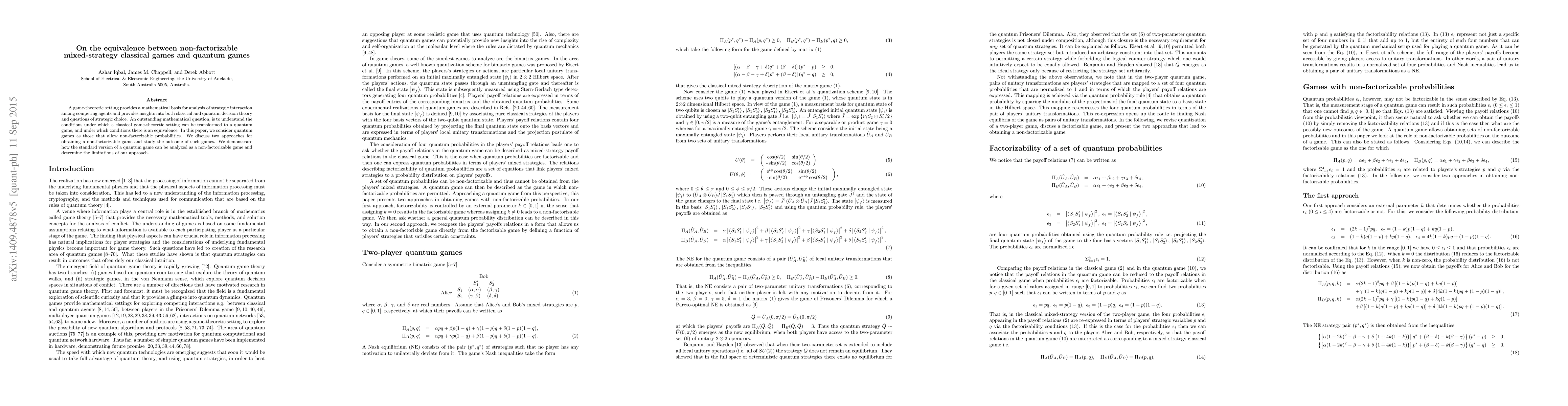 This paper explores the equivalence between classical mixed-strategy games and quantum games, focusing on non-factorizable probabilities. It investigates two methods to create non-factorizable games and analyzes their outcomes, highlighting the conditions under which classical games can be transformed into quantum games.