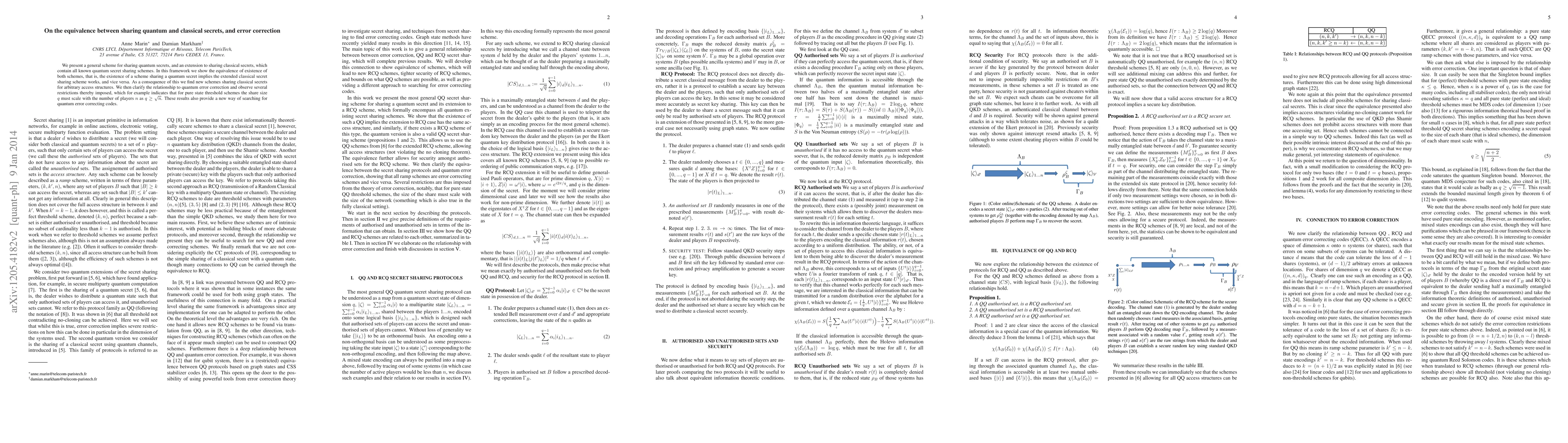 This paper establishes an equivalence between quantum and classical secret sharing schemes, demonstrating that the existence of one implies the existence of the other. It also reveals new classical secret sharing schemes for arbitrary access structures and discusses the implications for quantum error correction, including a necessary scaling relationship for share size.