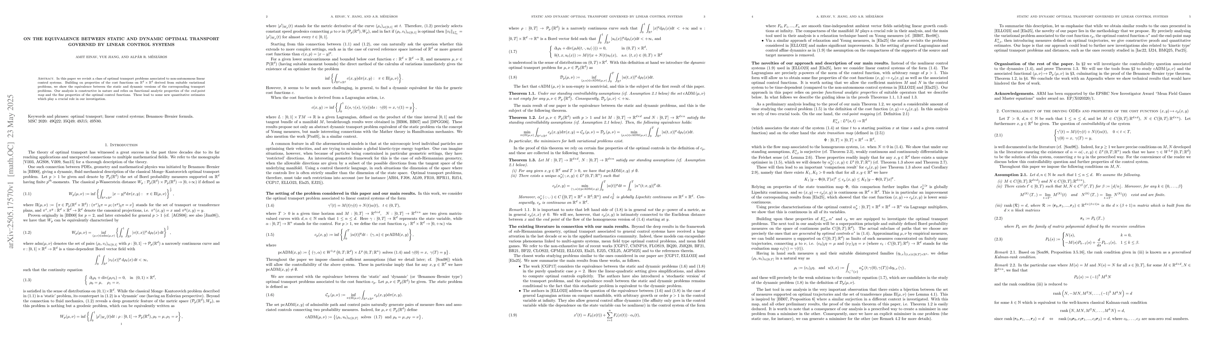 Researchers prove that static and dynamic optimal transport problems governed by linear control systems are equivalent, with implications for understanding and solving complex transportation problems.