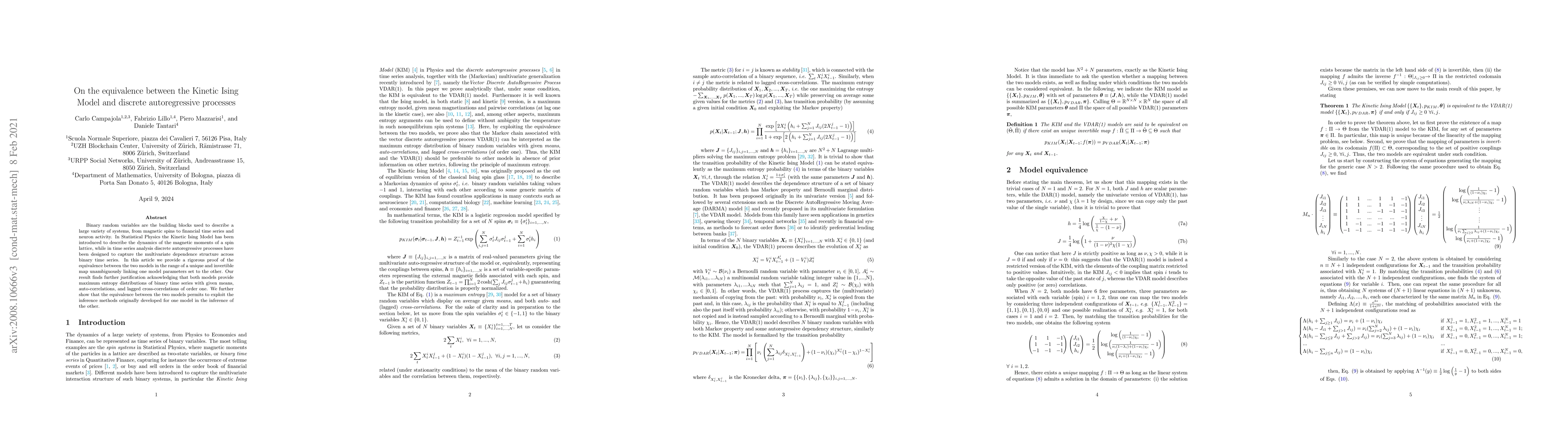 This paper rigorously proves the equivalence between the Kinetic Ising Model and discrete autoregressive processes for binary random variables, establishing a unique and invertible mapping between their parameters. The equivalence allows the use of inference methods from one model to analyze the other.