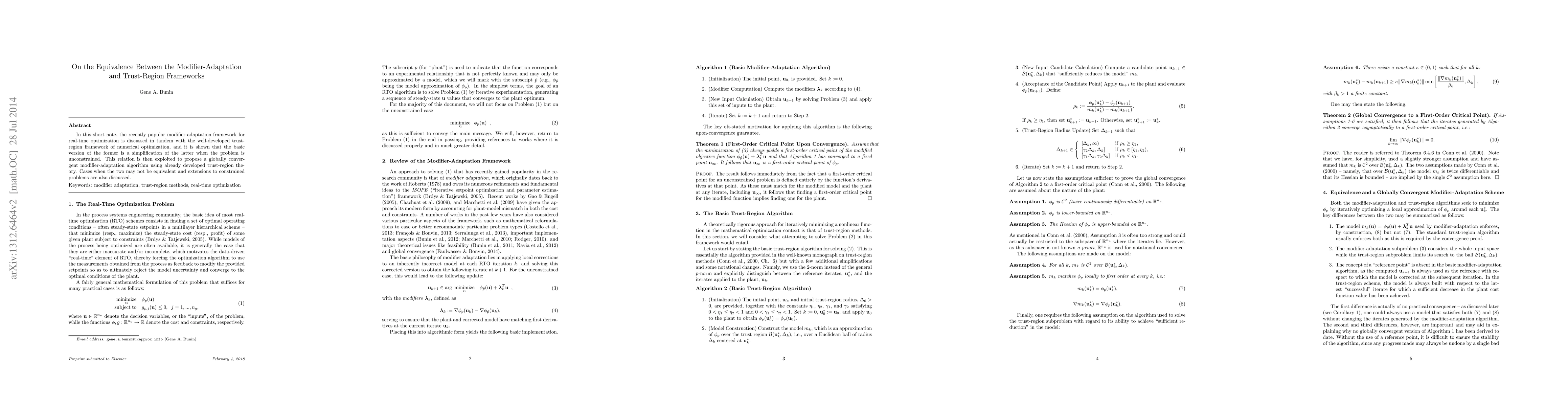 This paper demonstrates the equivalence between the modifier-adaptation framework and the trust-region method in unconstrained optimization, proposing a globally convergent algorithm using trust-region theory. It also explores cases of non-equivalence and extensions to constrained problems.