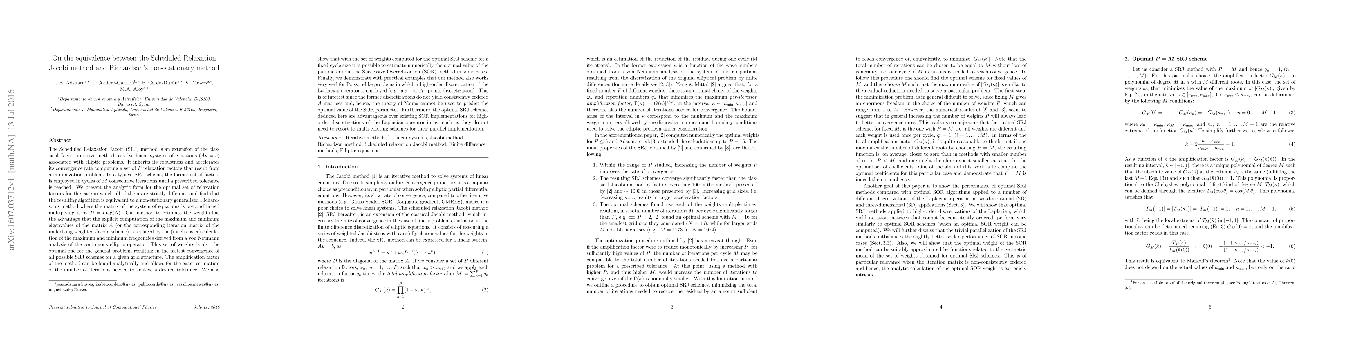 This paper demonstrates the equivalence between the Scheduled Relaxation Jacobi (SRJ) method and Richardson's non-stationary method for solving linear systems. It shows that the optimal set of SRJ relaxation factors is equivalent to a generalized Richardson's method, offering faster convergence and easier computation compared to traditional methods.