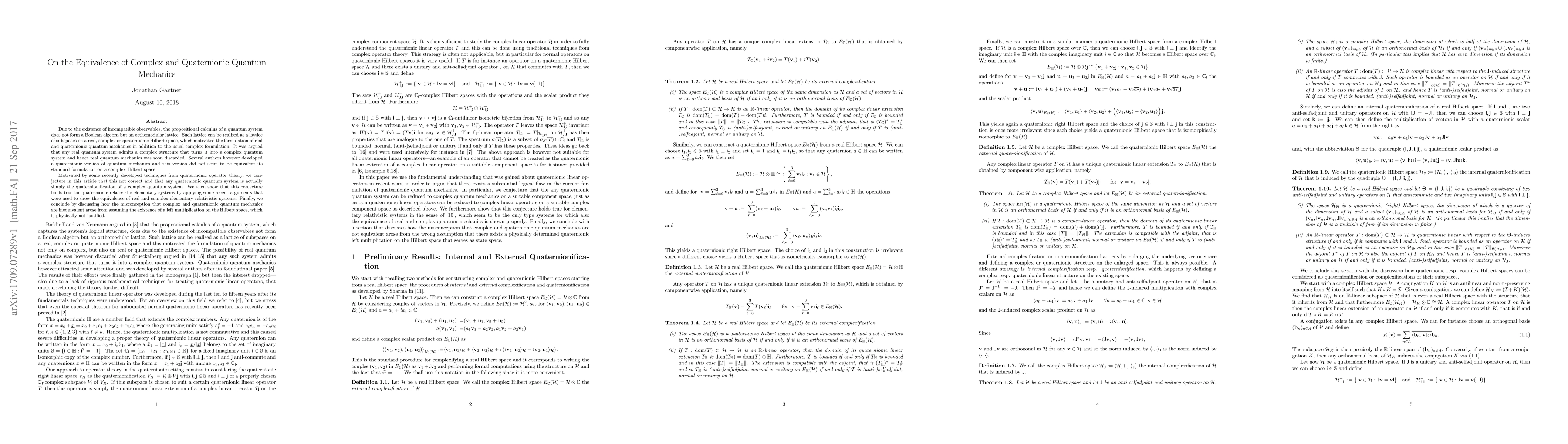 Due to the existence of incompatible observables, the propositional calculus of a quantum system does not form a Boolean algebra but an orthomodular lattice. Such lattice can be realised as a lattice of subspaces on a real, complex or quaternionic Hilbert space, which motivated the formulation of real and quaternionic quantum mechanics in addition to the usual complex formulation. It was argued that any real quantum system admits a complex structure that turns it into a complex quantum system and hence real quantum mechanics was soon discarded. Several authors however developed a quaternionic version of quantum mechanics and this version did not seem to be equivalent its standard formulation on a complex Hilbert space. Motivated by some recently developed techniques from quaternionic operator theory, we conjecture in this article that this not correct and that any quaternionic quantum system is actually simply the quaternionification of a complex quantum system. We then show that this conjecture holds true for quaternionic relativistic elementary systems by applying some recent arguments that were used to show the equivalence of real and complex elementary relativistic systems. Finally, we conclude by discussing how the misconception that complex and quaternionic quantum mechanics are inequivalent arose from assuming the existence of a left multiplication on the Hilbert space, which is physically not justified.