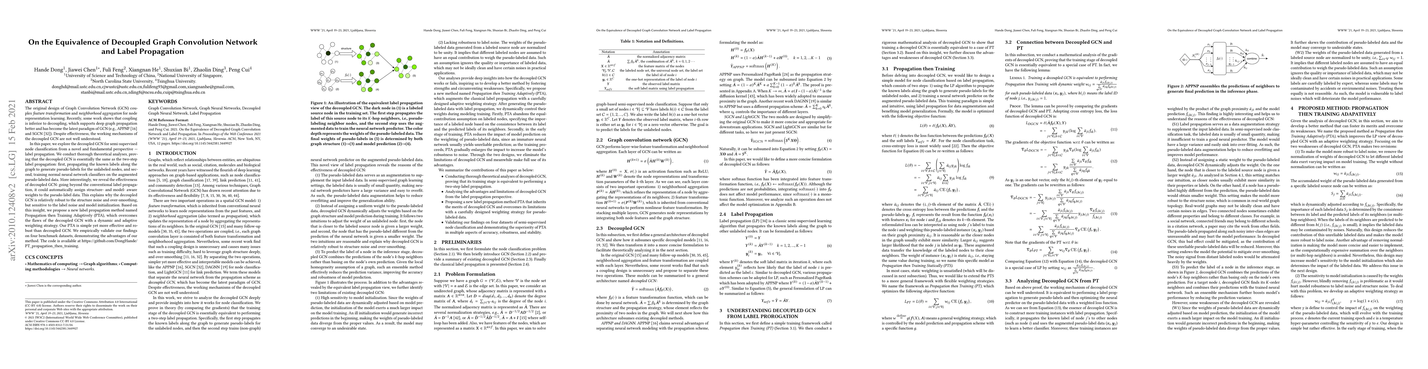 A new label propagation method called Propagation then Training Adaptively (PTA) is proposed to overcome flaws in decoupled Graph Convolution Networks by dynamically assigning weights to pseudo-label data, outperforming the original decoupled GCN on four benchmark datasets.