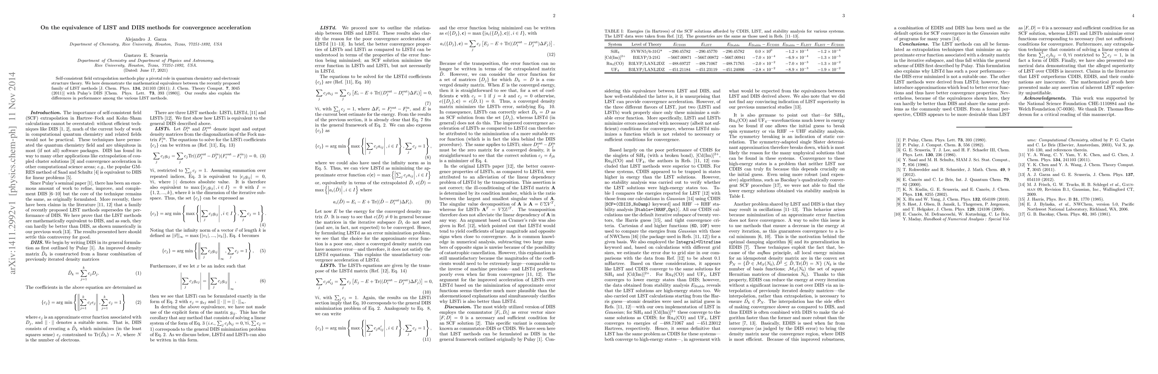 Self-consistent field extrapolation methods play a pivotal role in quantum chemistry and electronic structure theory. We here demonstrate the mathematical equivalence between the recently proposed family of LIST methods [J. Chem. Phys. 134, 241103 (2011); J. Chem. Theory Comput. 7, 3045 (2011)] with Pulay's DIIS [Chem. Phys. Lett. 73, 393 (1980)]. Our results also explain the differences in performance among the various LIST methods.