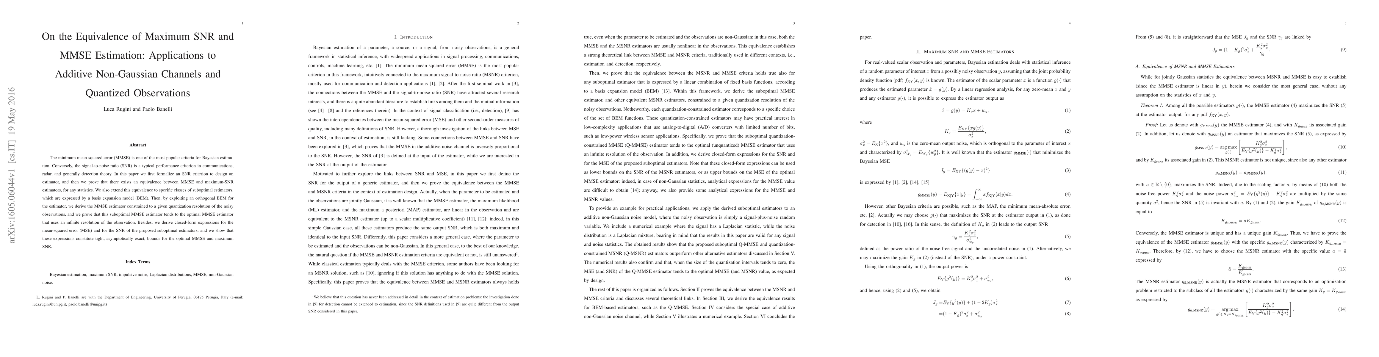 This paper establishes an equivalence between MMSE and maximum-SNR estimators under general statistical conditions. It also extends this equivalence to suboptimal estimators based on basis expansion models, and demonstrates that quantized MMSE estimators converge to the optimal MMSE estimators as quantization resolution increases.