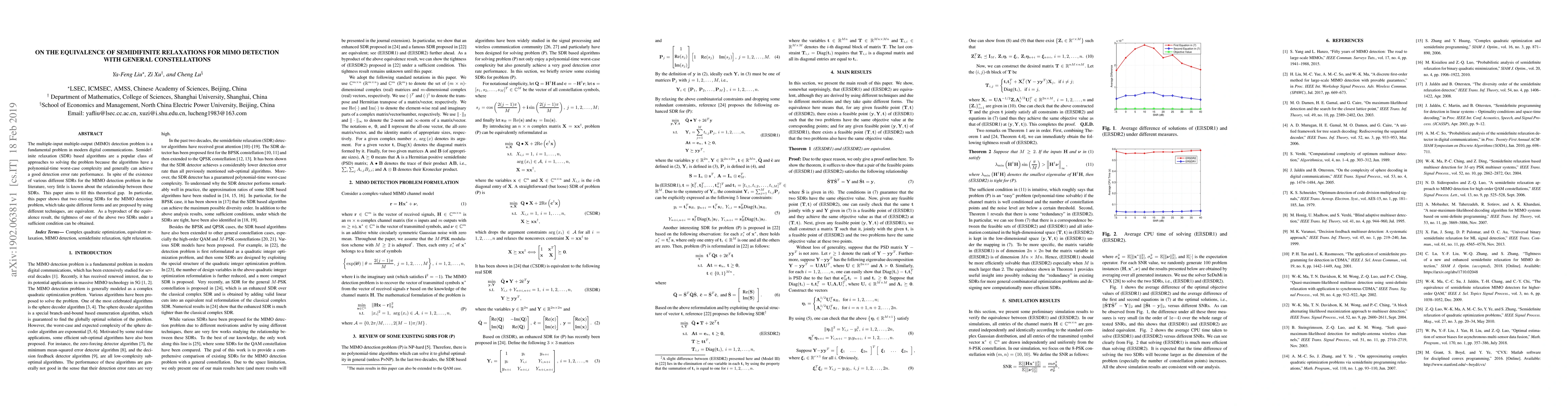 This paper investigates the equivalence of two semidefinite relaxations for MIMO detection with general constellations, demonstrating that despite their different forms and derivation techniques, they are theoretically equivalent. Additionally, it establishes the tightness of one relaxation under a sufficient condition.